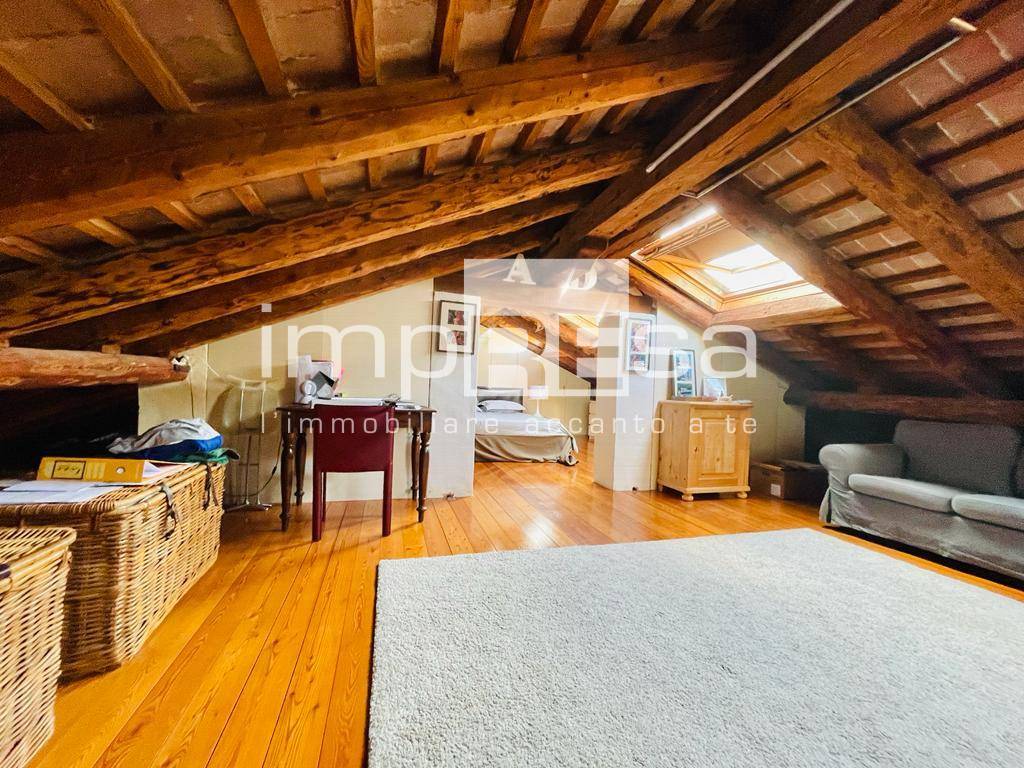 Splendido appartamento dalle generose dimensioni, composto da tre camere doppi servizi, soggiorno e angolo cottura, completamente travato e collocato in un edificio storico di interesse storico.
