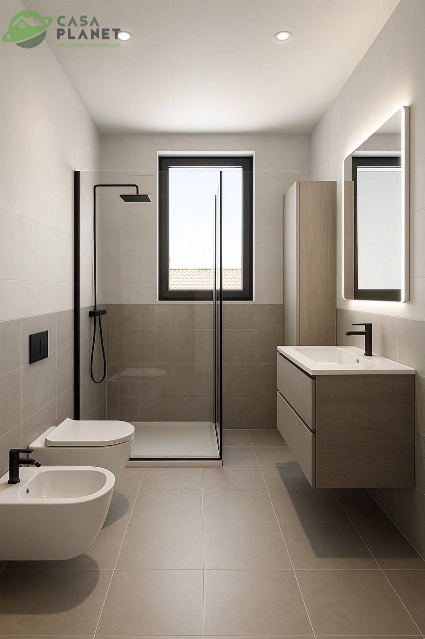 I bagni, due in totale, sono stati progettati con gusto e saranno rifiniti con piastrelle di design e sanitari di alta qualit.