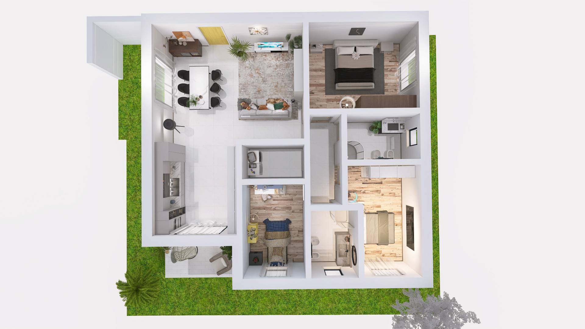 L'appartamento viene consegnato non arredato ma grazie al nostro servizio di virtual home staging troverai alcune foto che ti aiuteranno ad immaginare la personalizzazione degli spazi interni.