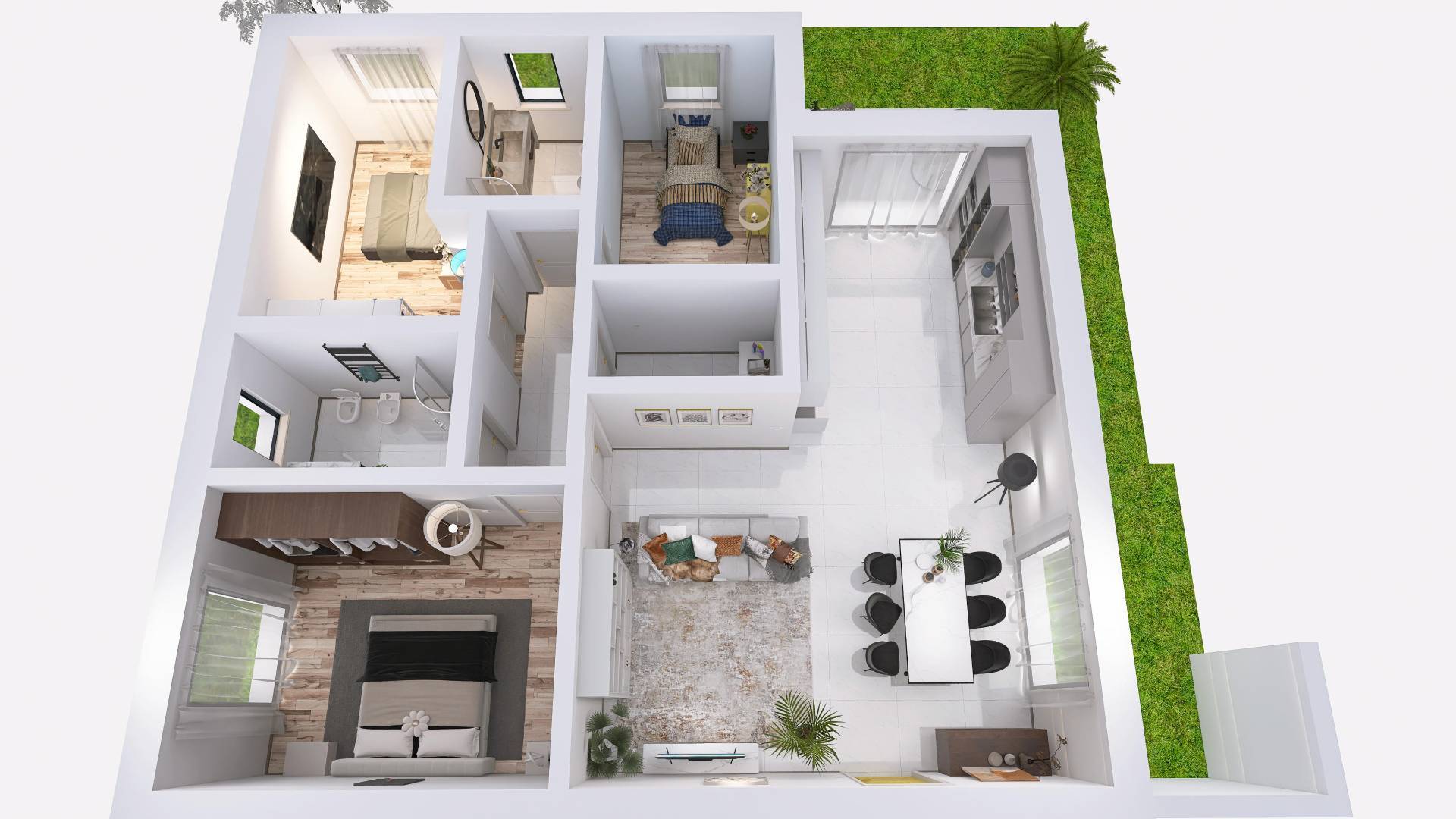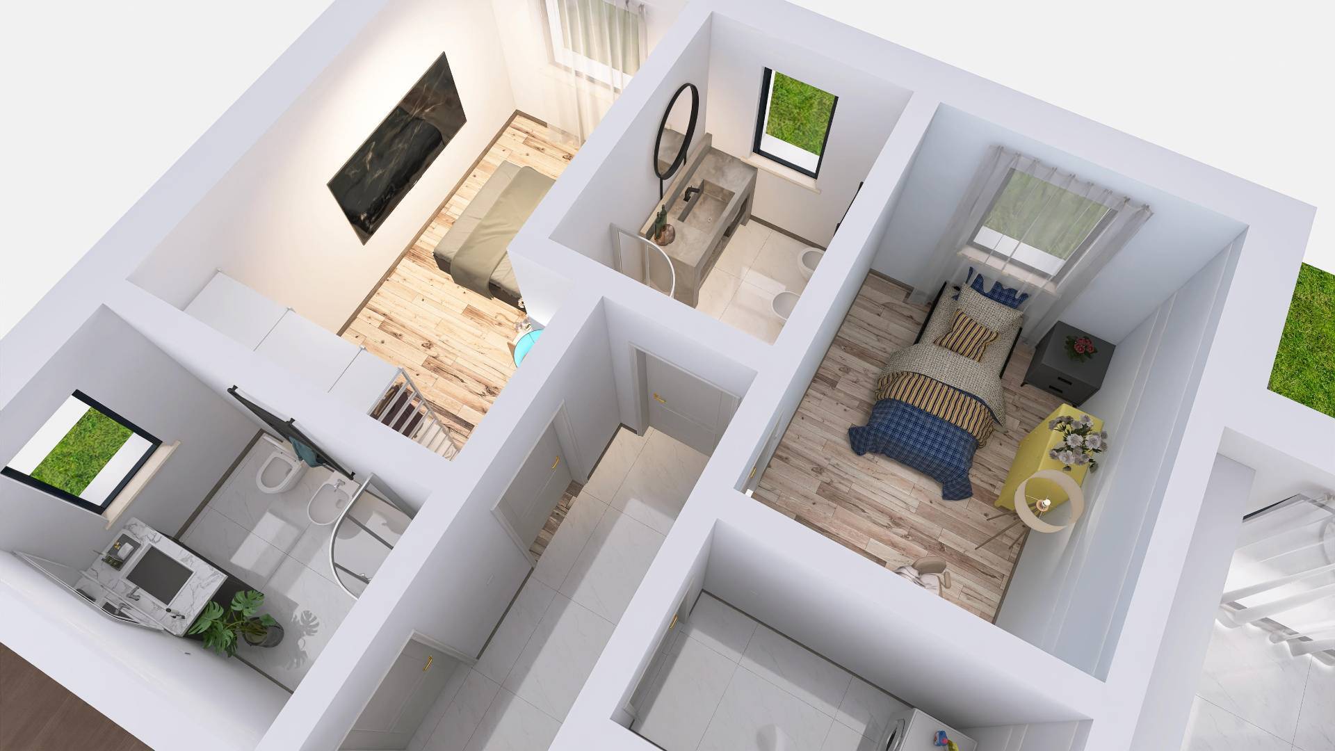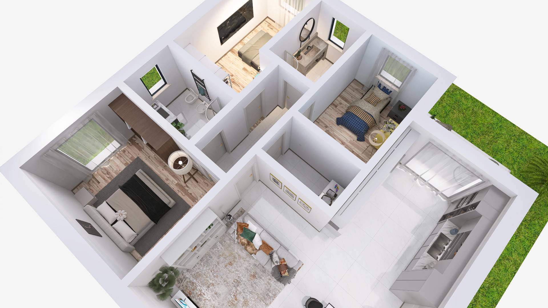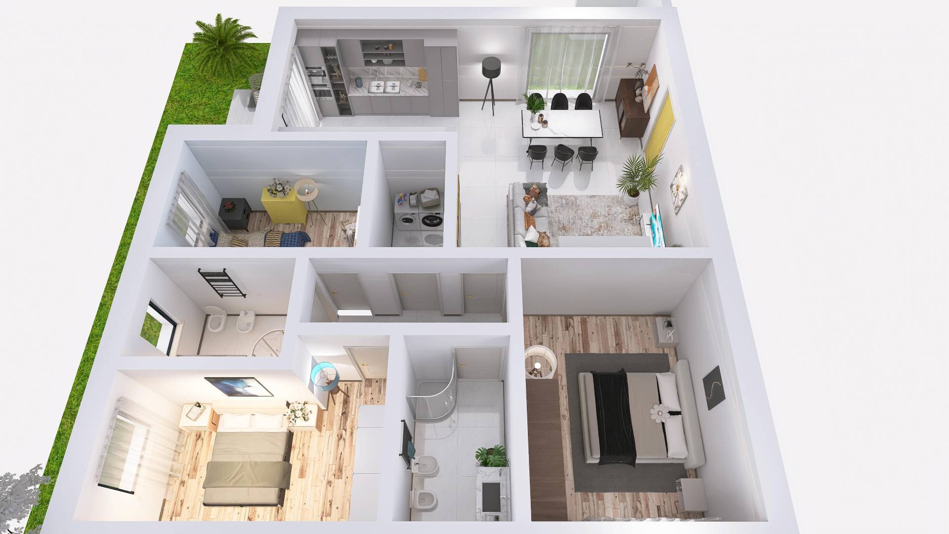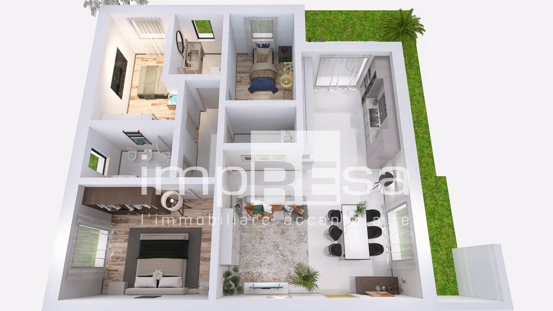 L'appartamento viene consegnato non arredato ma grazie al nostro servizio di virtual home staging troverai alcune foto che ti aiuteranno ad immaginare la personalizzazione degli spazi interni.