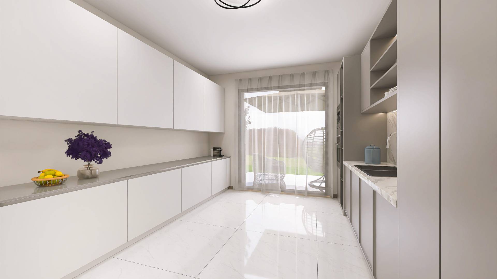 Preganziol zona centrale, in vendita appartamento al terzo e ultimo piano, con tre camere, due bagni, lavanderia, garage e posto auto, in elegante palazzina di solo sette unit, nuova costruzione in classe A4 consegna prevista fine 2025. L'appartamento si compone di un ampia zona giorno openspace di quasi cinquanta metri quadrati, dalla quale attraverso un disimpegno si accede alla zona notte composta di tre camere di cui una matrimoniale, due bagni e una comoda lavanderia.