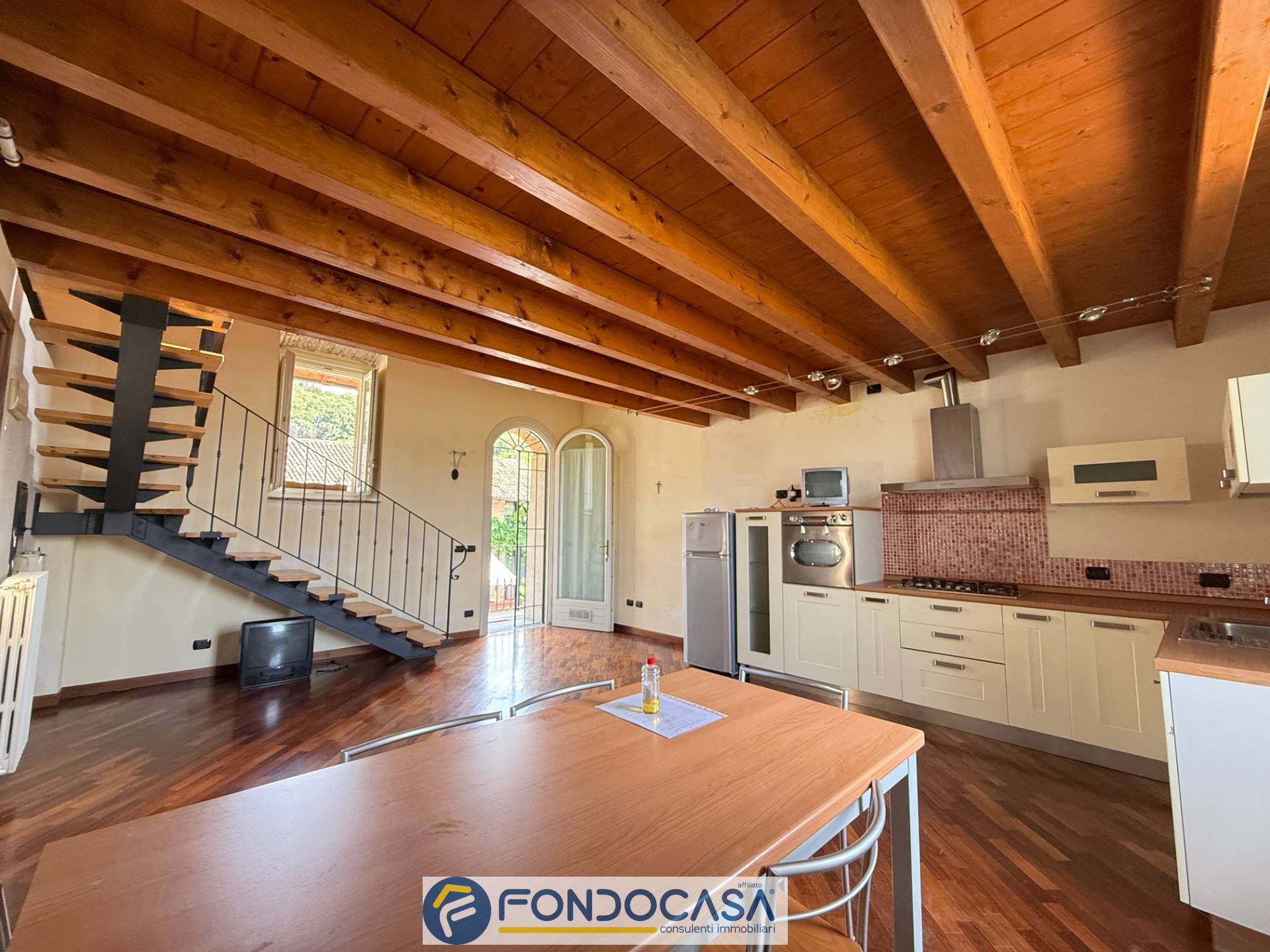 Occasione in Franciacorta, in uno dei piu' bei borghi della Franciacorta, Vicino a Provaglio d'Iseo in piccolo cascinale restaurato, bell'appartamento in tipica casetta franciacortina e caratterizzato dal tetto in legno a vista e pietra e composto da; ingresso su soggiorno con cucina open-space e soppalco uso salotto, disimpegno notte, camera da letto matrimoniale, 2° camera alla francese con ampio soppalco uso 3° camera o studio, ripostiglio, 2 bagni completi, balcone.