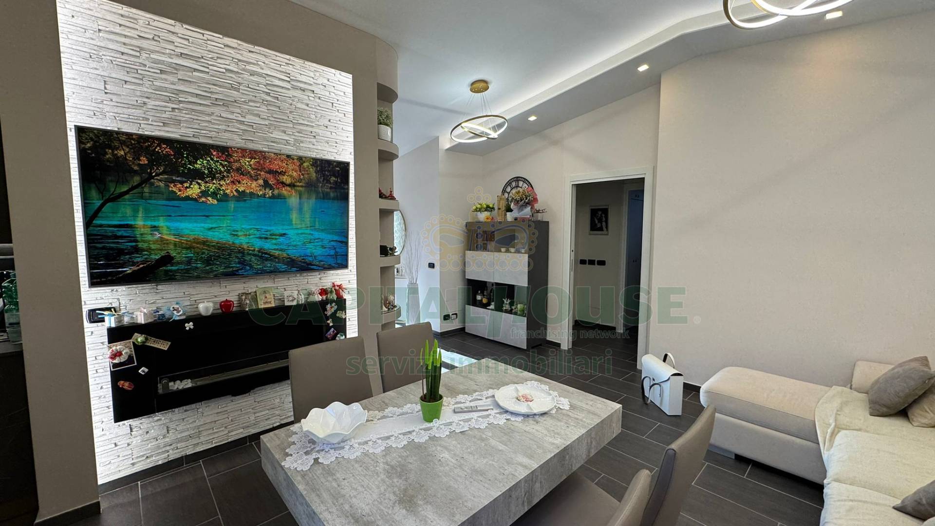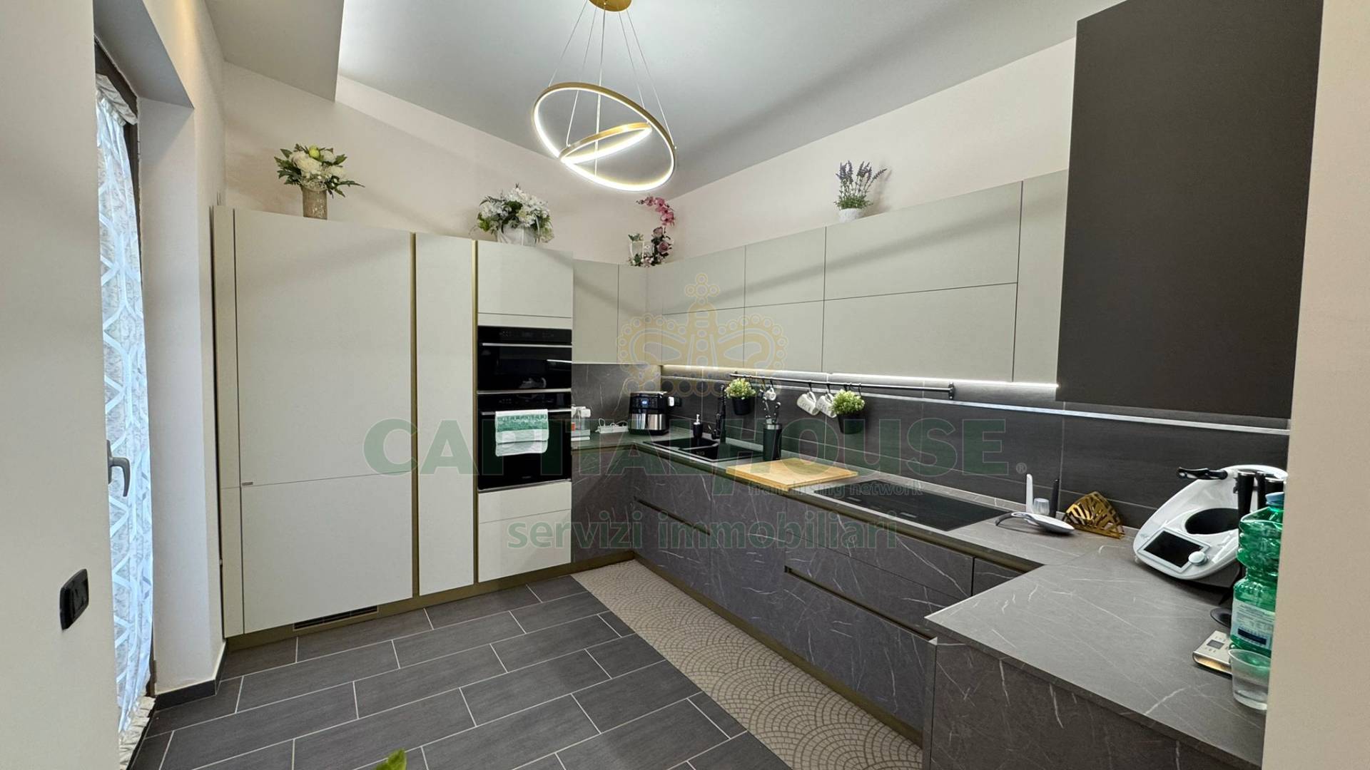 Lingresso si apre su un luminoso salone con cucina a vista, ideale per vivere momenti di convivialit in famiglia o con amici.