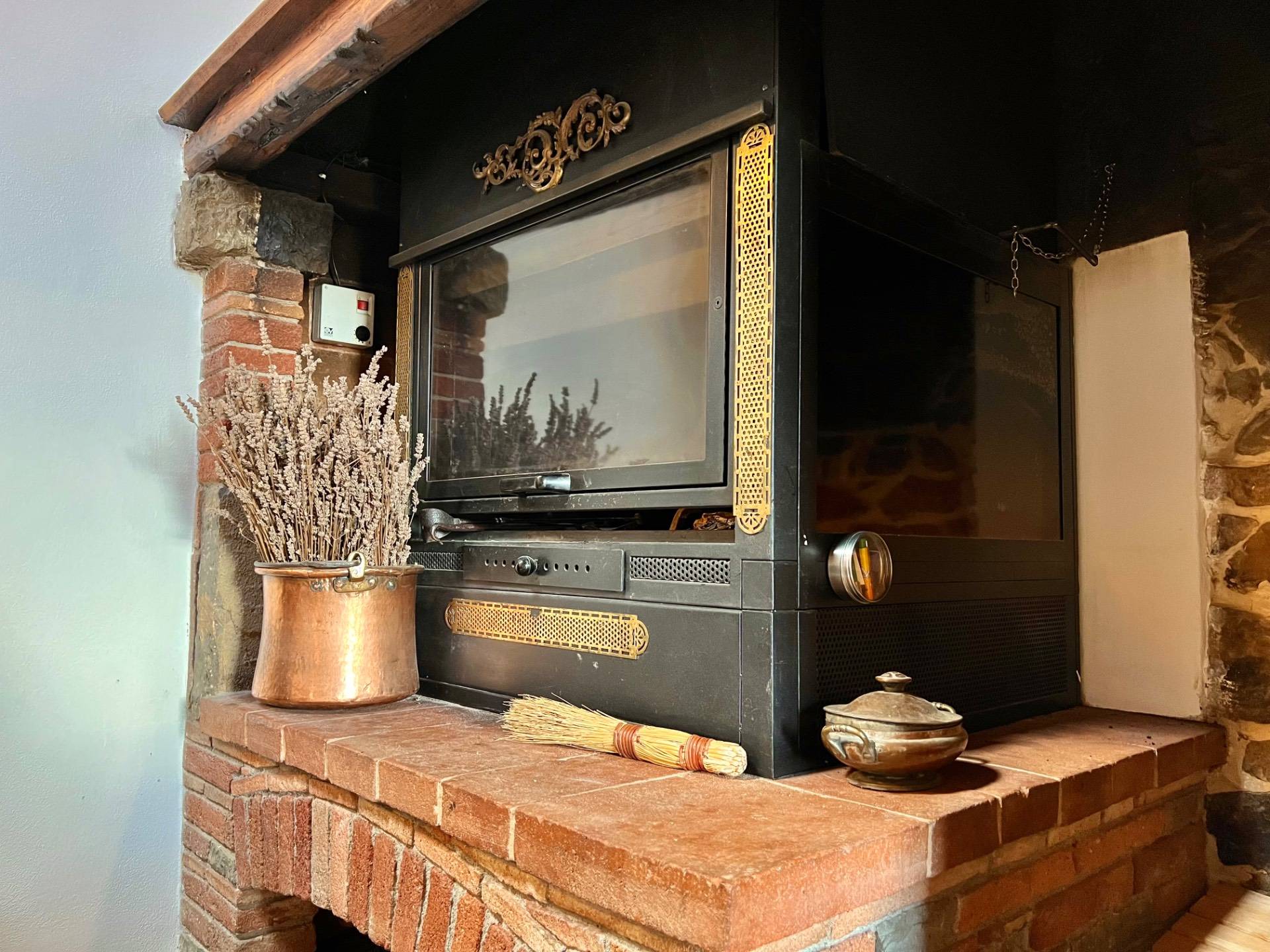 Entrando all'interno troviamo l'open-space con soggiorno e angolo cottura, un bellissimo termocamino, parete in pietra con travi a vista, due camere da letto matrimoniali di buone dimensioni, ripostiglio molto comodo e un ampio bagno con doccia.