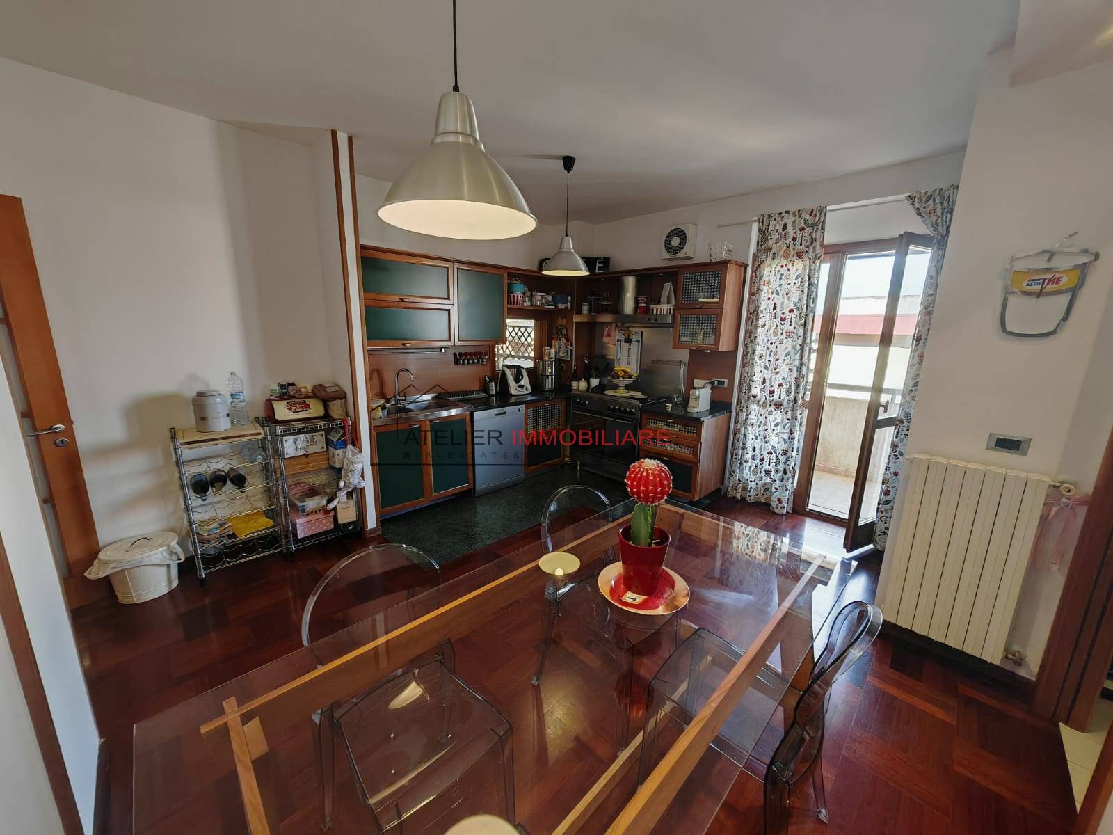 Dal living si accede ad una piccola verandina riservata, mentre la cucina abitabile, separata e funzionale, dotata di balcone dedicato e pratica zona lavanderia.