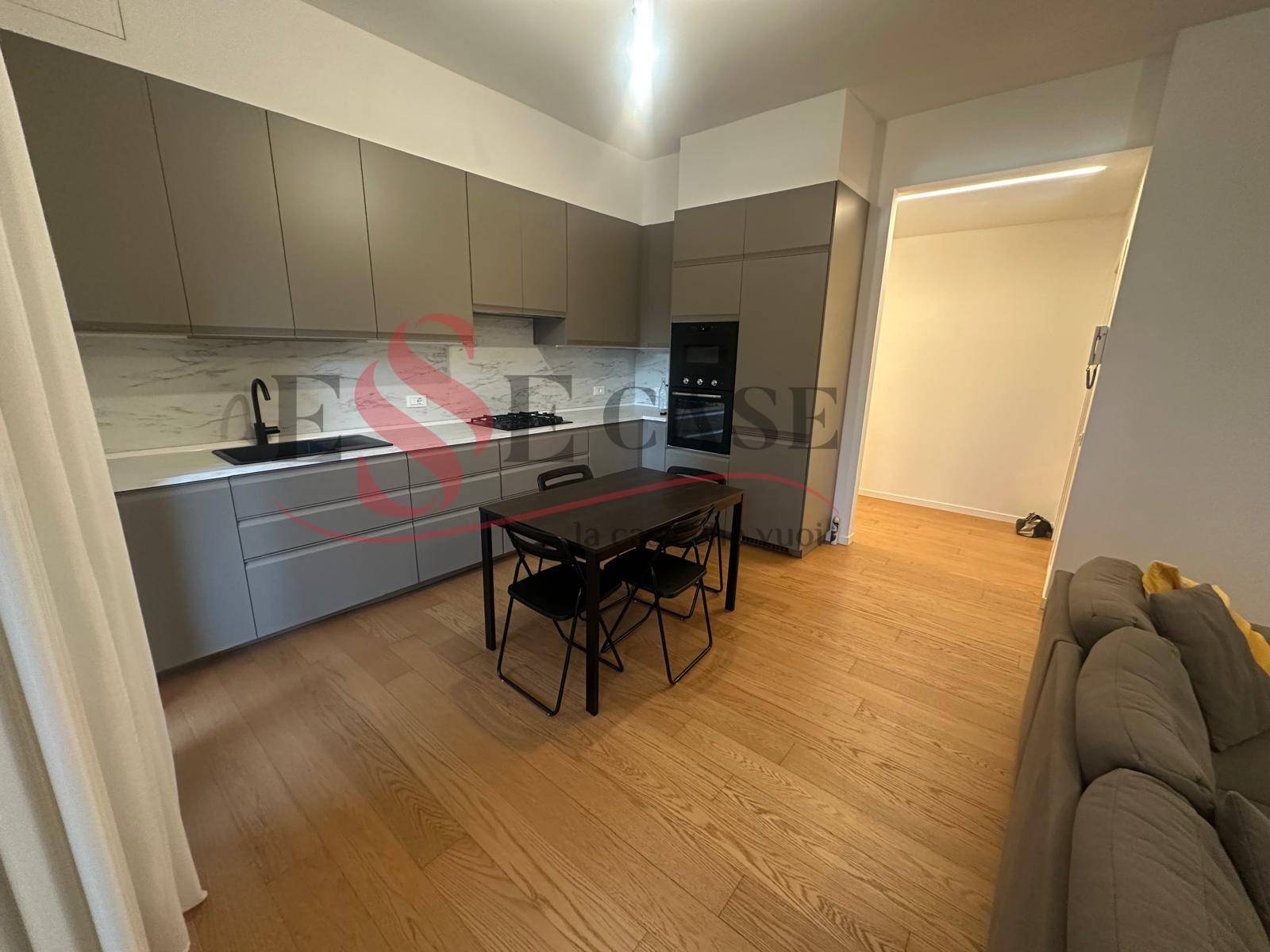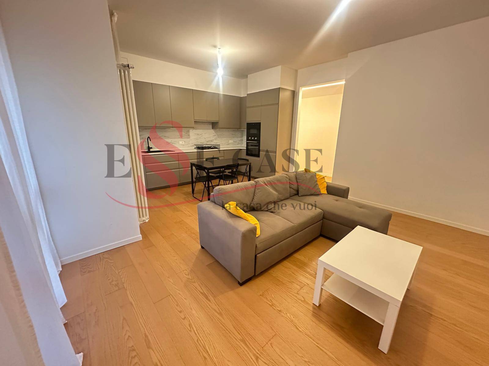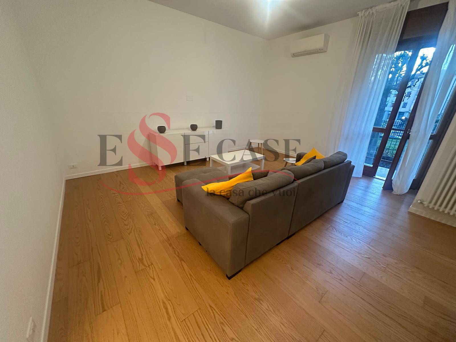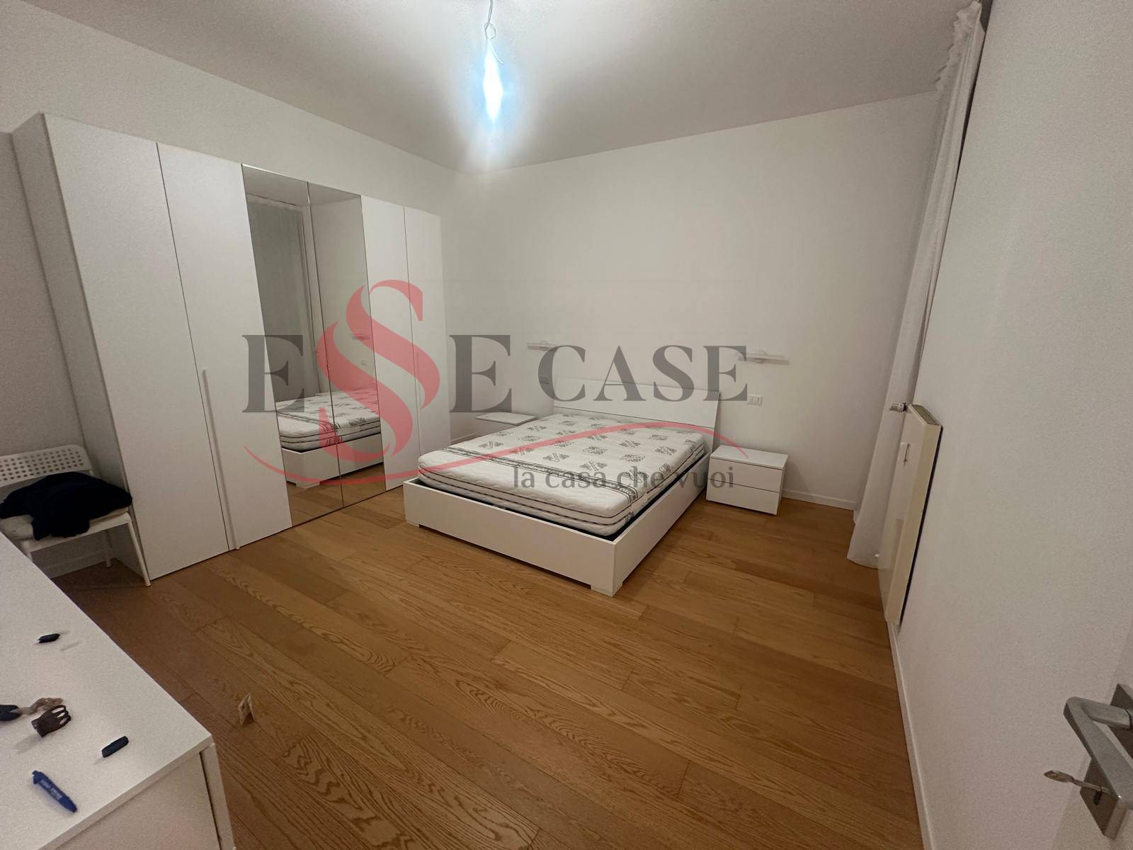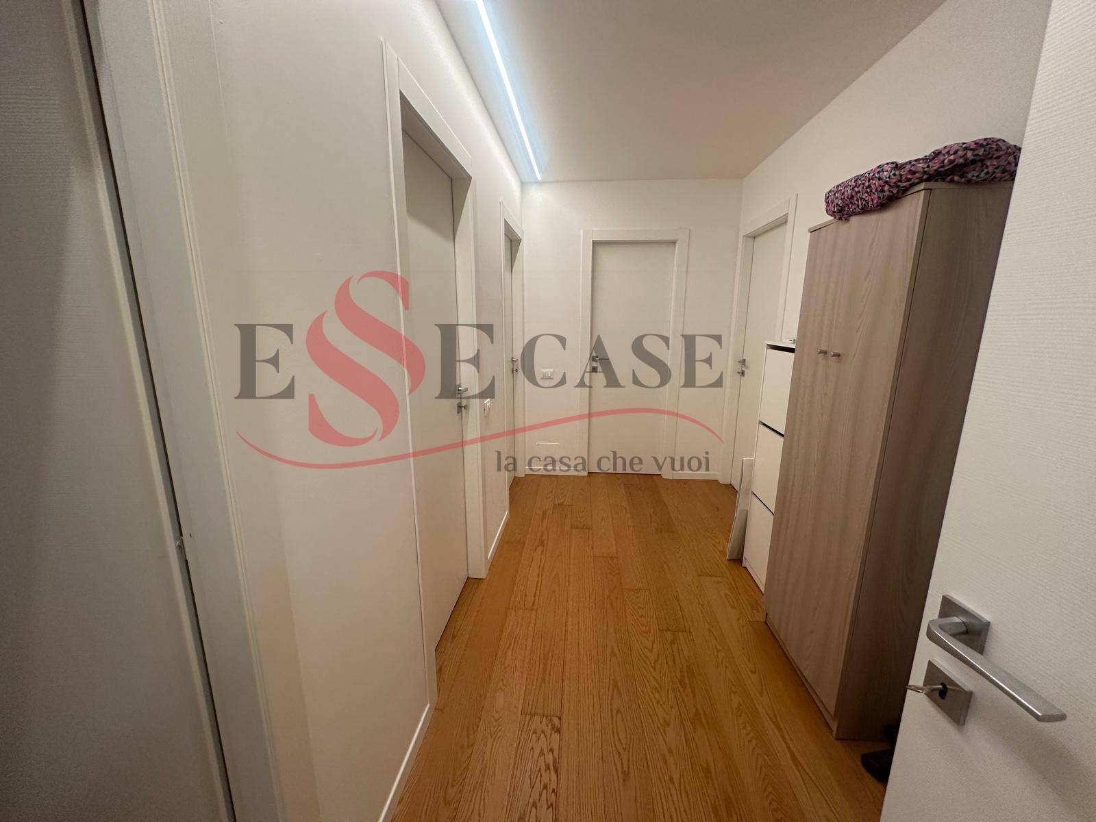 La soluzione presenta rovere spazzolato in tutto l'appartamento tranne nei bagni, tapparelle elettriche, serramenti in legno doppio colore e doppio vetro.