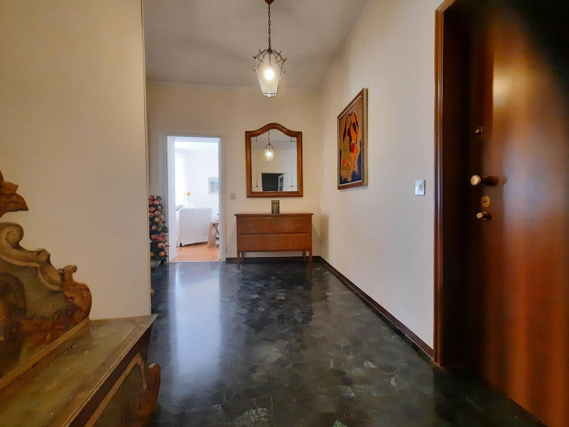 Nel cuore di Rapallo, in Via della Libert 34, a pochi isolati dal Lungomare Vittorio Veneto e da tutti i servizi, proponiamo un appartamento di ampia metratura posto al primo piano di un elegante Palazzo Residenziale rivestito in paramano e marmo travertino.