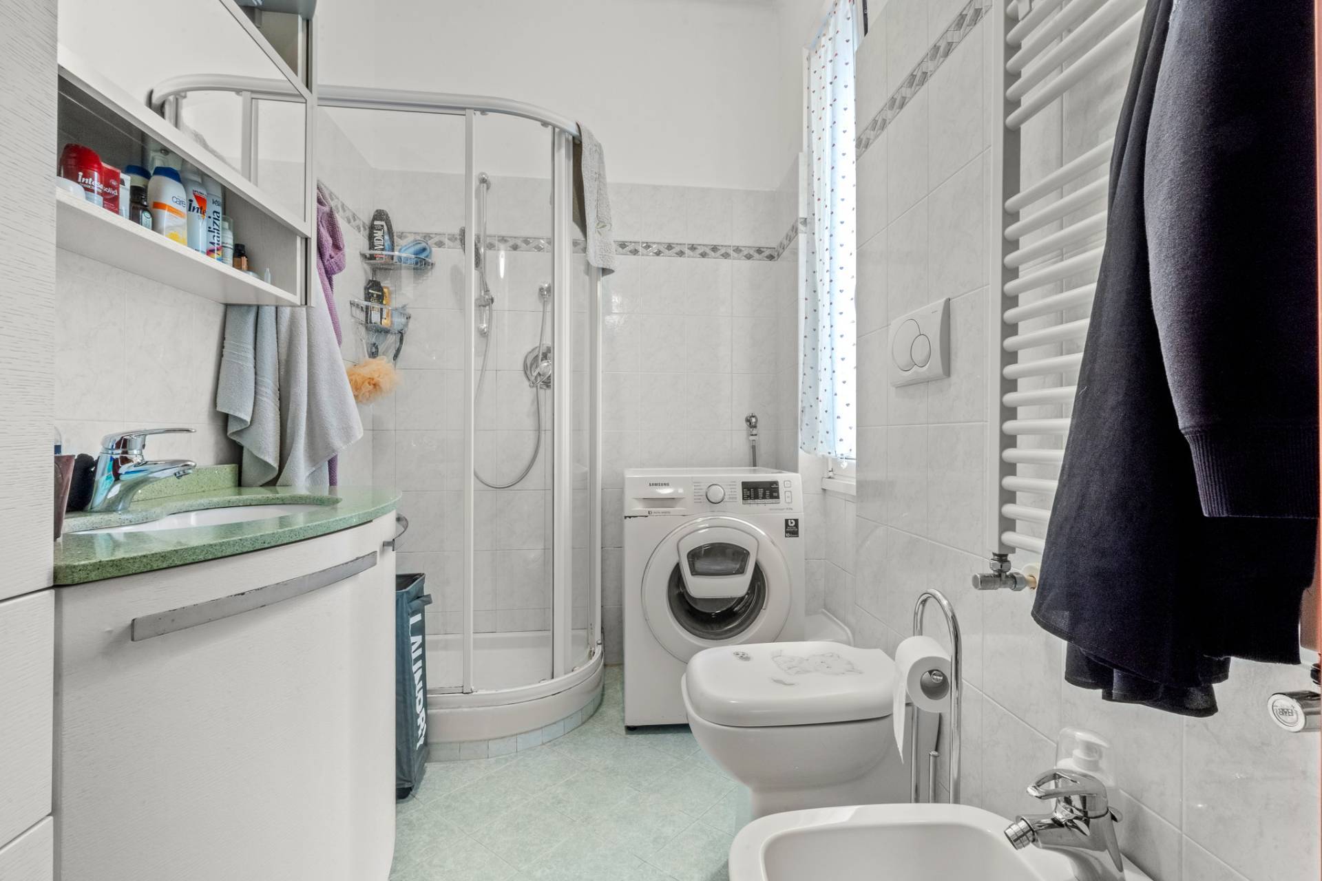 Sul lato destro del corridoio, invece, si trovano il bagno ben mantenuto e l'ampia camera da letto principale, luminosa e confortevole.
