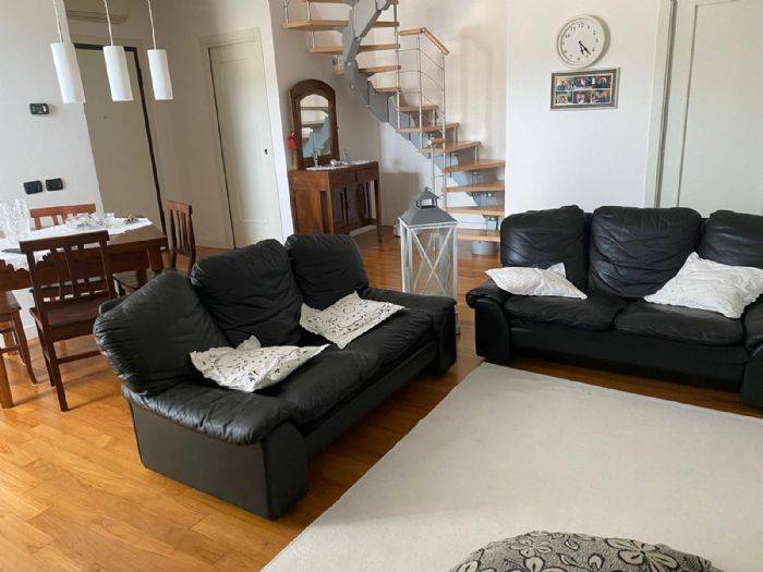 A Ravenna in pieno centro storico e in prestigioso complesso residenziale a sviluppo orizzontale, proponiamo appartamento arredato, al piano primo, di ampia metratura, sviluppantesi su due piani e cos composto: al primo piano ampio soggiorno con balcone, cucina abitabile, ripostiglio con armadiature, disimpegno con armadio a muro, due camere matrimoniali e due bagni entrambi con box-doccia; al piano mansardato possibilit di altre due camere e terzo bagno.