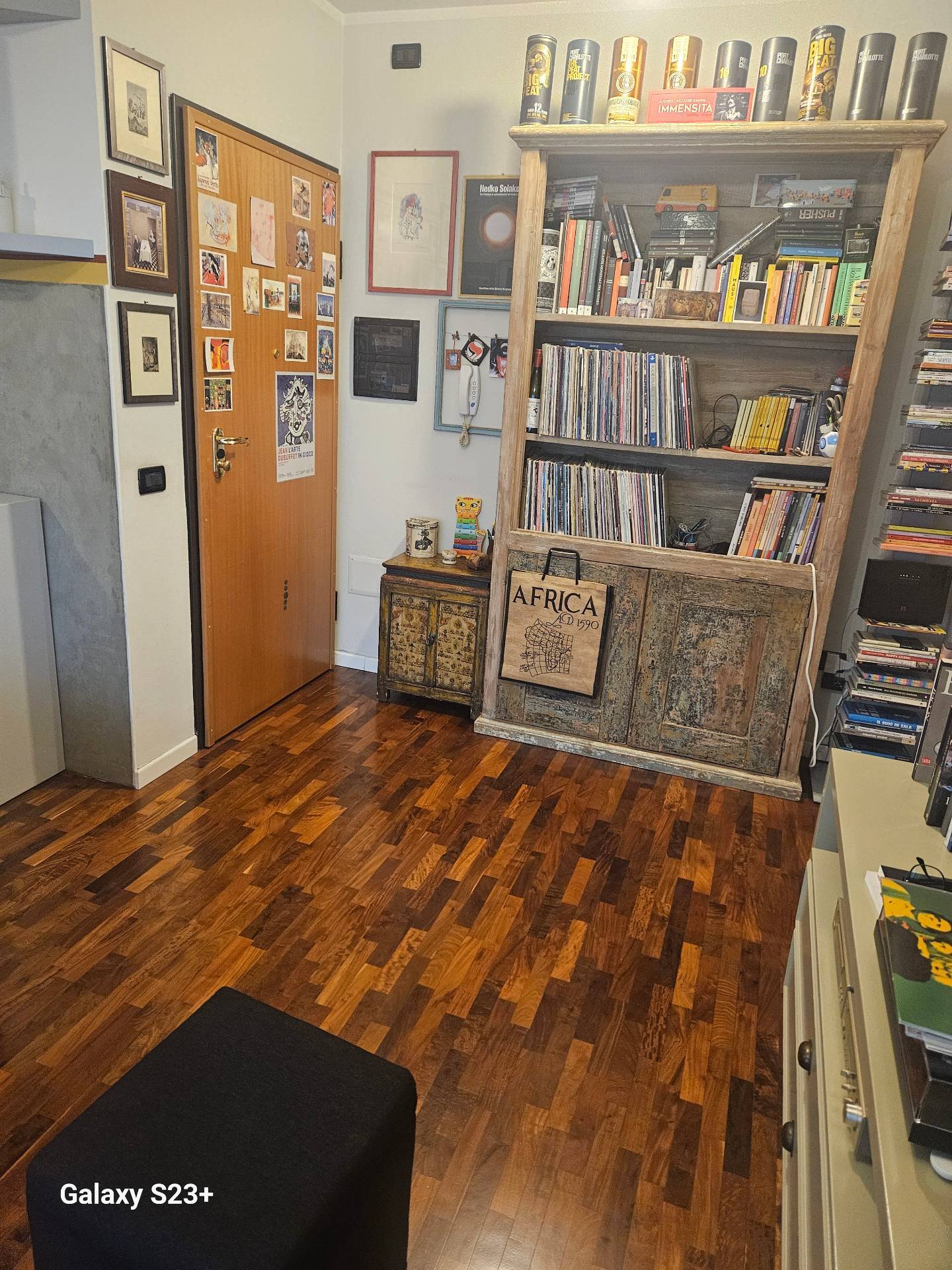 Il pavimento in parquet elegante, gli infissi a ribalta in legno con vetro camera.