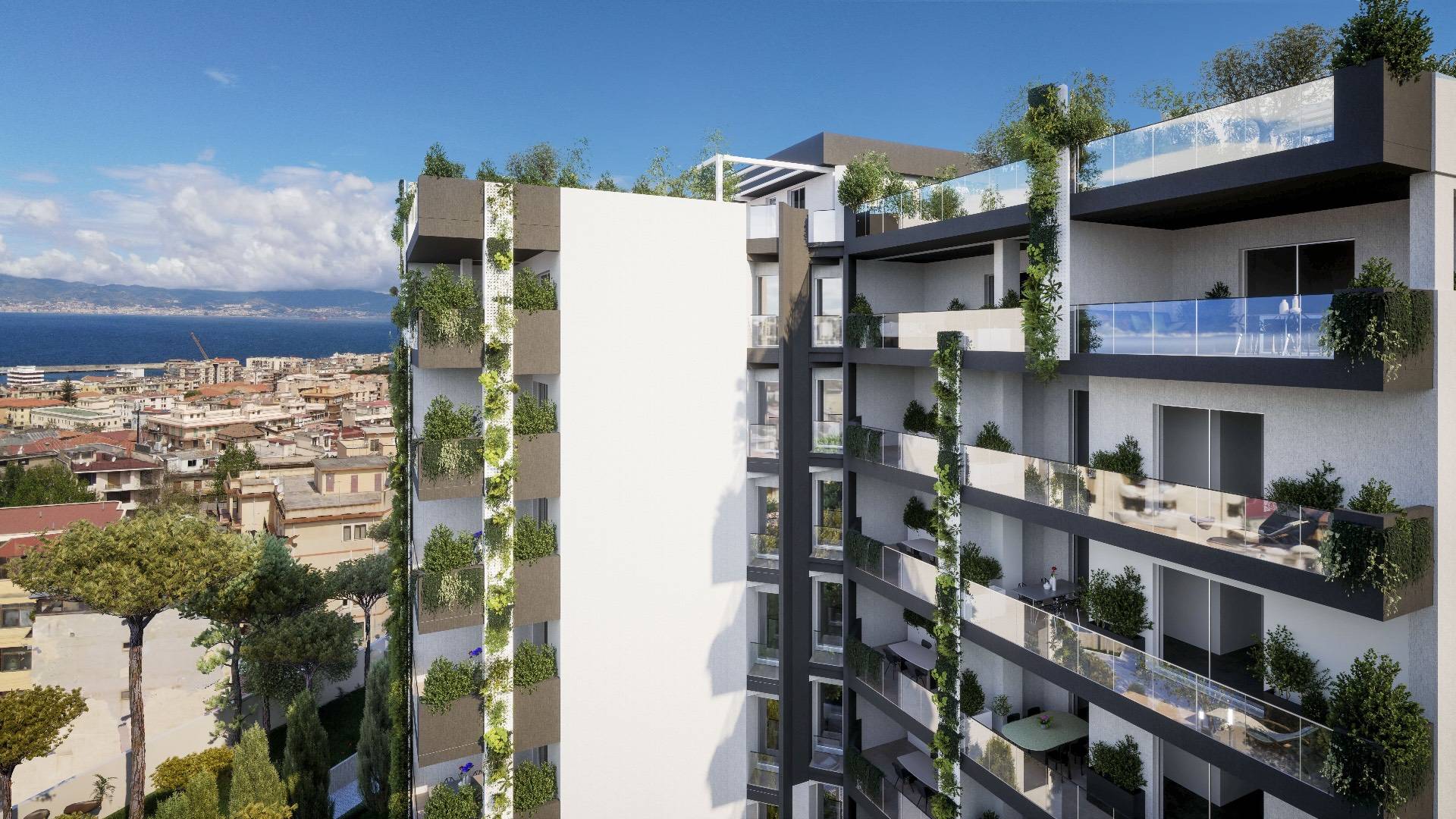 Parco Caff - Reggio Calabria - via Borrace alla Caserma 67 - Adiacenze Universit e Consiglio Regionale - complesso residenziale in costruzione di ultima generazione con rifiniture di pregio, riscaldamento invernale radiante a pavimento e raffreddamento estivo canalizzato dalla massima efficienza energetica, ampi balconi e terrazzi panoramici, la pi recente tecnologia antisismica e di risparmio energetico con impianto fotovoltaico condominiale.