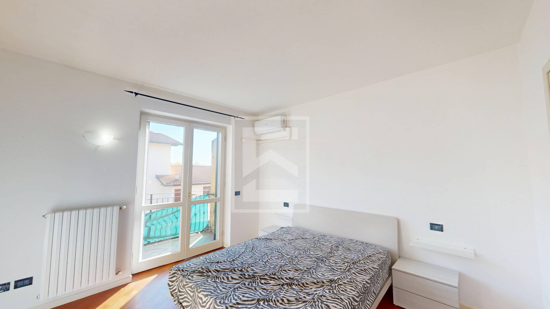 La zona notte composta da un bagno finestrato con doccia e attacco lavatrice e da una grande camera matrimoniale con accesso alla terrazza esclusiva.