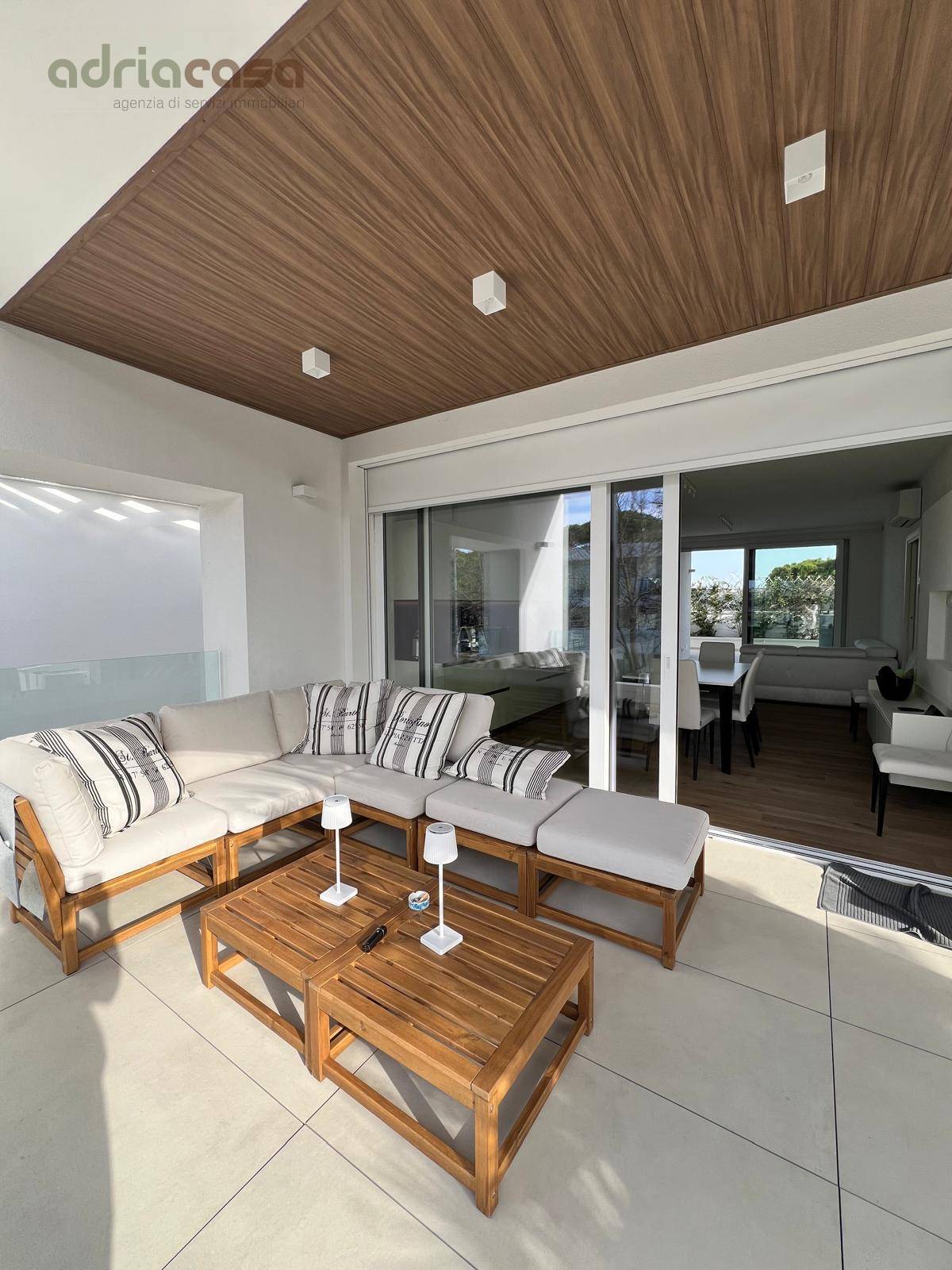 L'ingresso conduce a un ampio soggiorno con zona pranzo, valorizzato da un pavimento in legno di quercia e da una doppia uscita su due splendidi terrazzi loggiati, ideali per creare un'area relax, un angolo barbecue o una jacuzzi per godersi i momenti migliori della bella stagione.