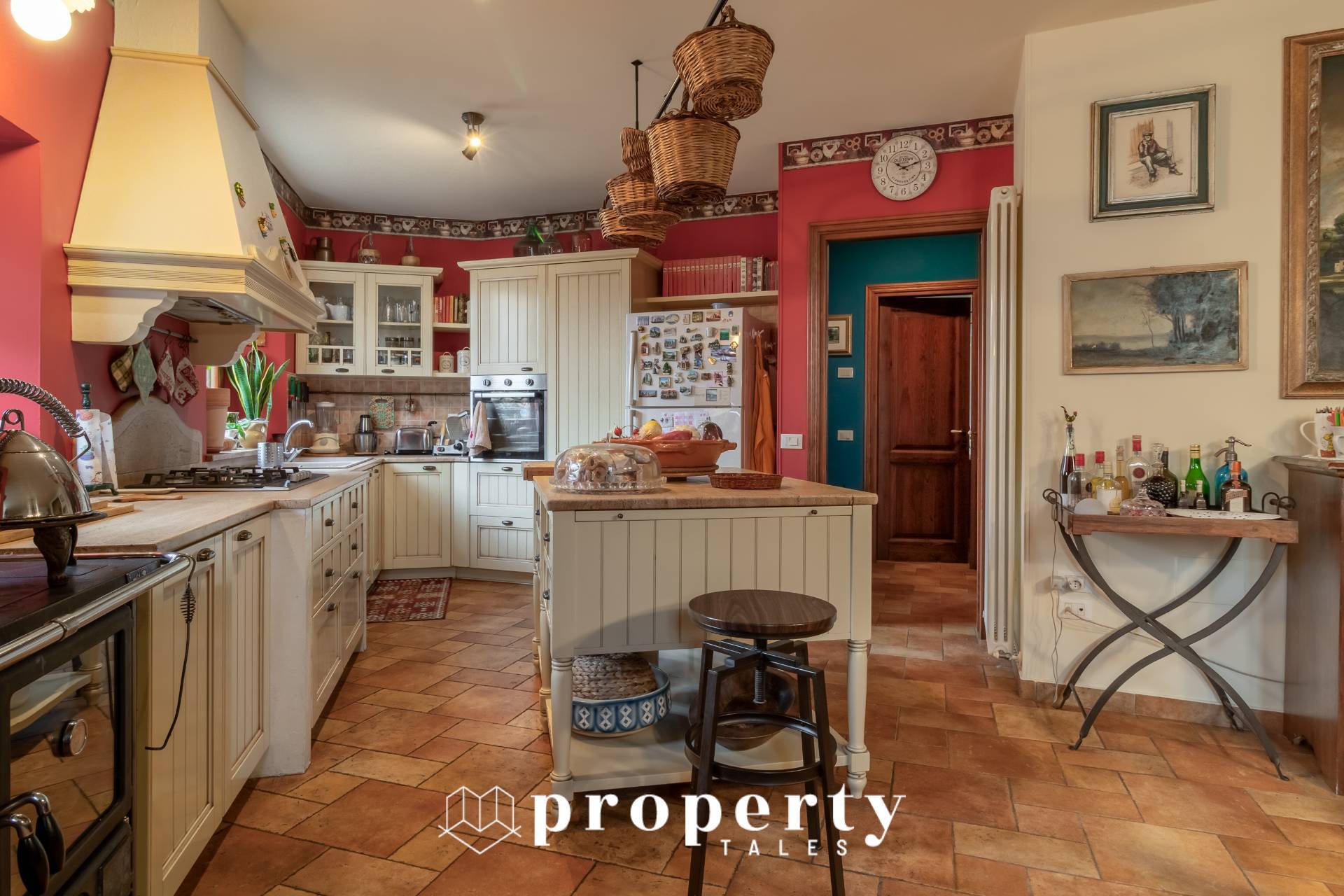Segue una cucina ampia e attrezzata, con fuochi tradizionali, forno a legna e cucina economica a legna, perfetta per chi ama la convivialit e la cucina autentica.