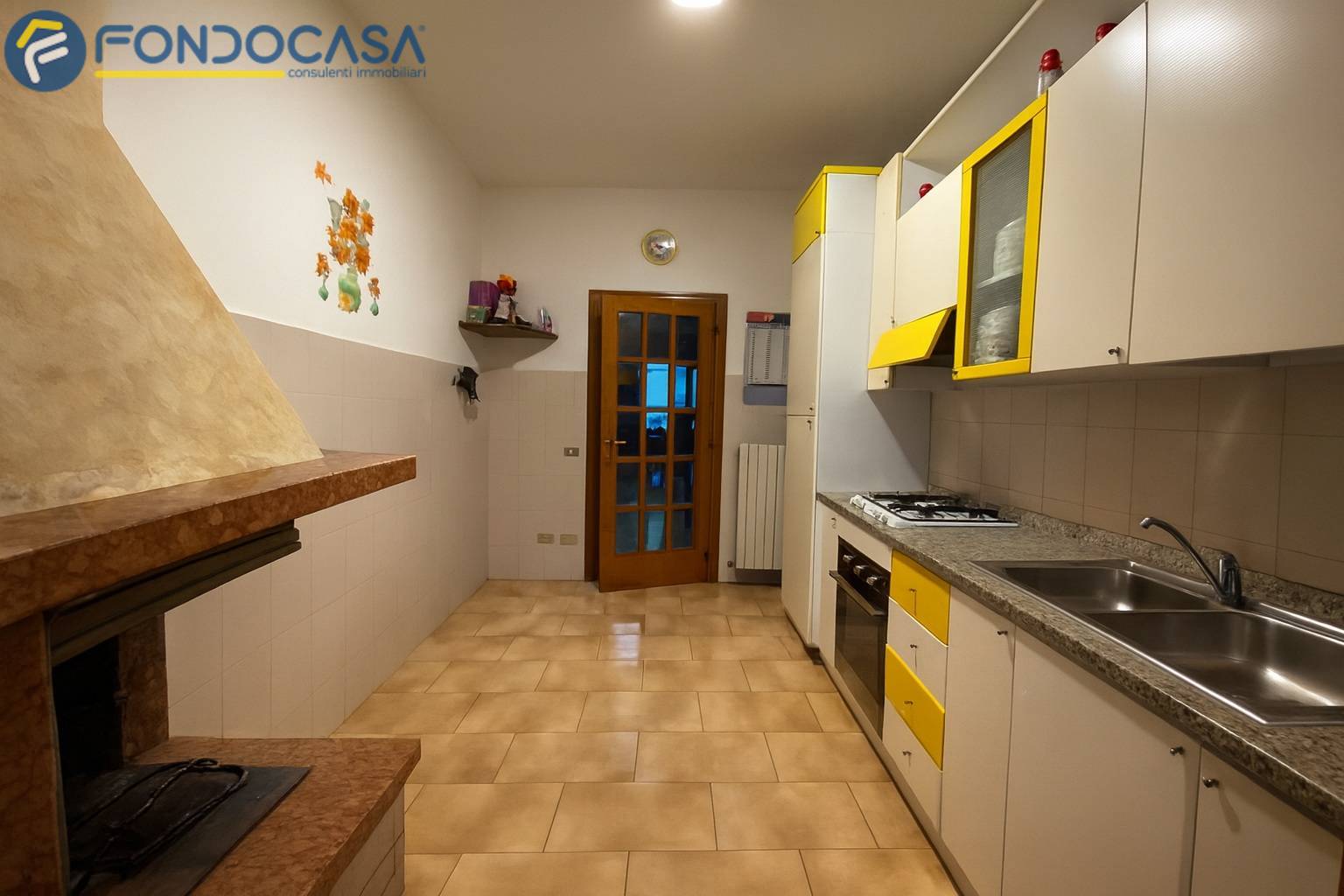 La cucina abitabile dotata di camino e affaccio su un secondo balcone.