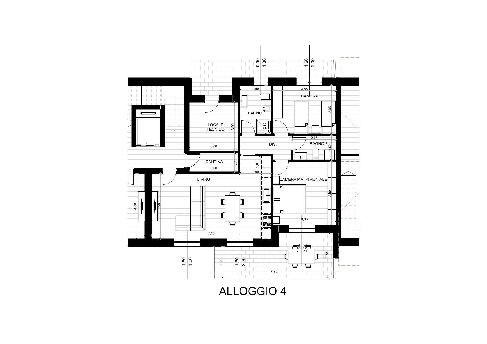 Siamo lieti di proporre la vendita di un intervento residenziale esclusivo che prevede la realizzazione di: - due ville unifamiliari angolari libere su tre lati - quattro appartamenti centrali di cui due al piano terreno con giardino e due al piano primo con ampi terrazzi Ogni unit immobiliare dispone di: - box auto abbinato - possibilit di box doppio - spazi esterni privati (giardini o terrazzi). ALLOGGIO 4 L'appartamento si trova al piano primo ed servito dal comodo ascensore condominiale.