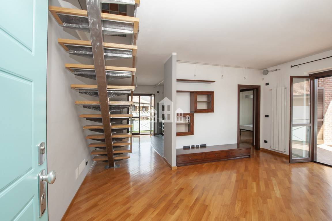 L'alloggio situato al primo e ultimo piano della quadrifamiliare, e comprende anche la mansarda collegata internamente.