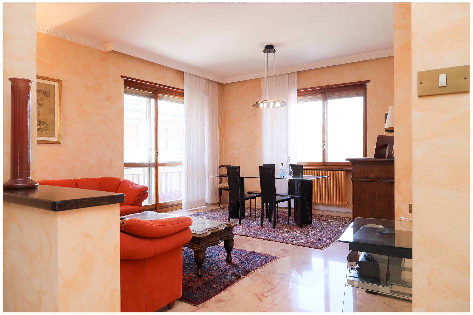 Libero su 4 lati questo immobile si compone di 5 locali, di cui due ampie camere da letto e due bagni, (uno a servizio di una camera matrimoniale) un salone doppio, una cucina abitabile, un utilissimo ripostiglio, perfetto quindi per garantire il massimo comfort anche a famiglie con figli.
