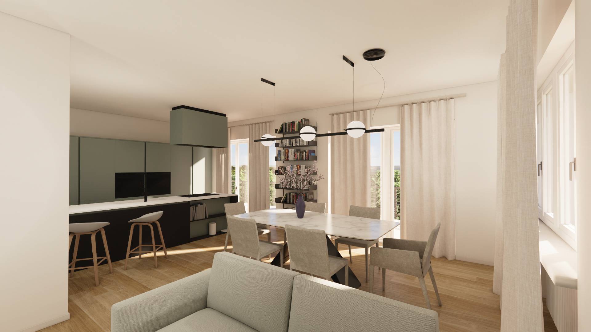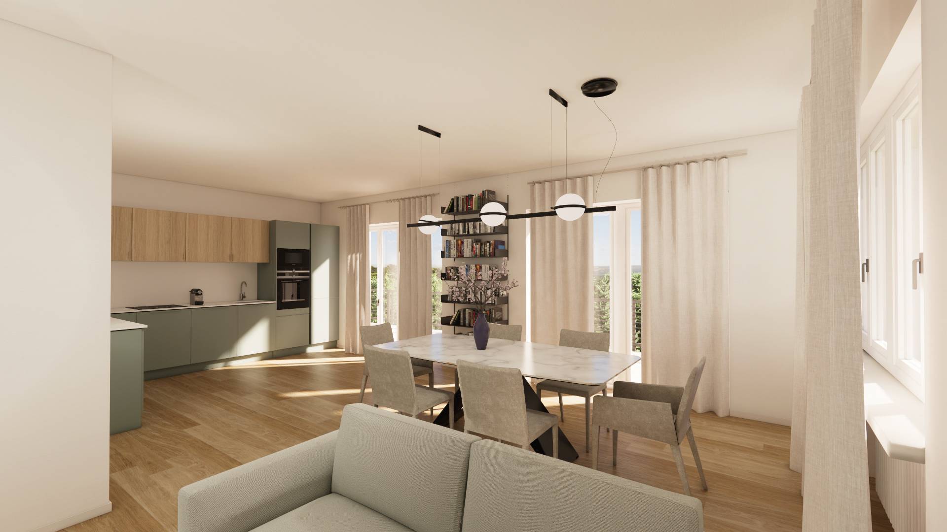 Nelle immediate vicinanze del Castello di Rivoli ed in prossimit dei percorsi della collina morenica, proponiamo soluzione abitativa unica nel suo genere: in condominio immerso nella natura, completamente ristrutturato nel 2015 (nuova centrale termica, ascensore, rinnovamento impianti, facciate, serramenti parti comuni e locali condominiali). L'appartamento (attualmente in stato originale) verr consegnato ristrutturato con la seguente disposizione: ingresso, disimpegno, due camere, doppi servizi entrambi finestrati, ampia zona living con cucina a vista con accesso su grande terrazzo di 25 mq con affaccio sulla bassa Val di Susa. Le foto dell'annuncio sono in parte dei render indicativi di come verr realizzato, oltre alle foto dello stato attuale.