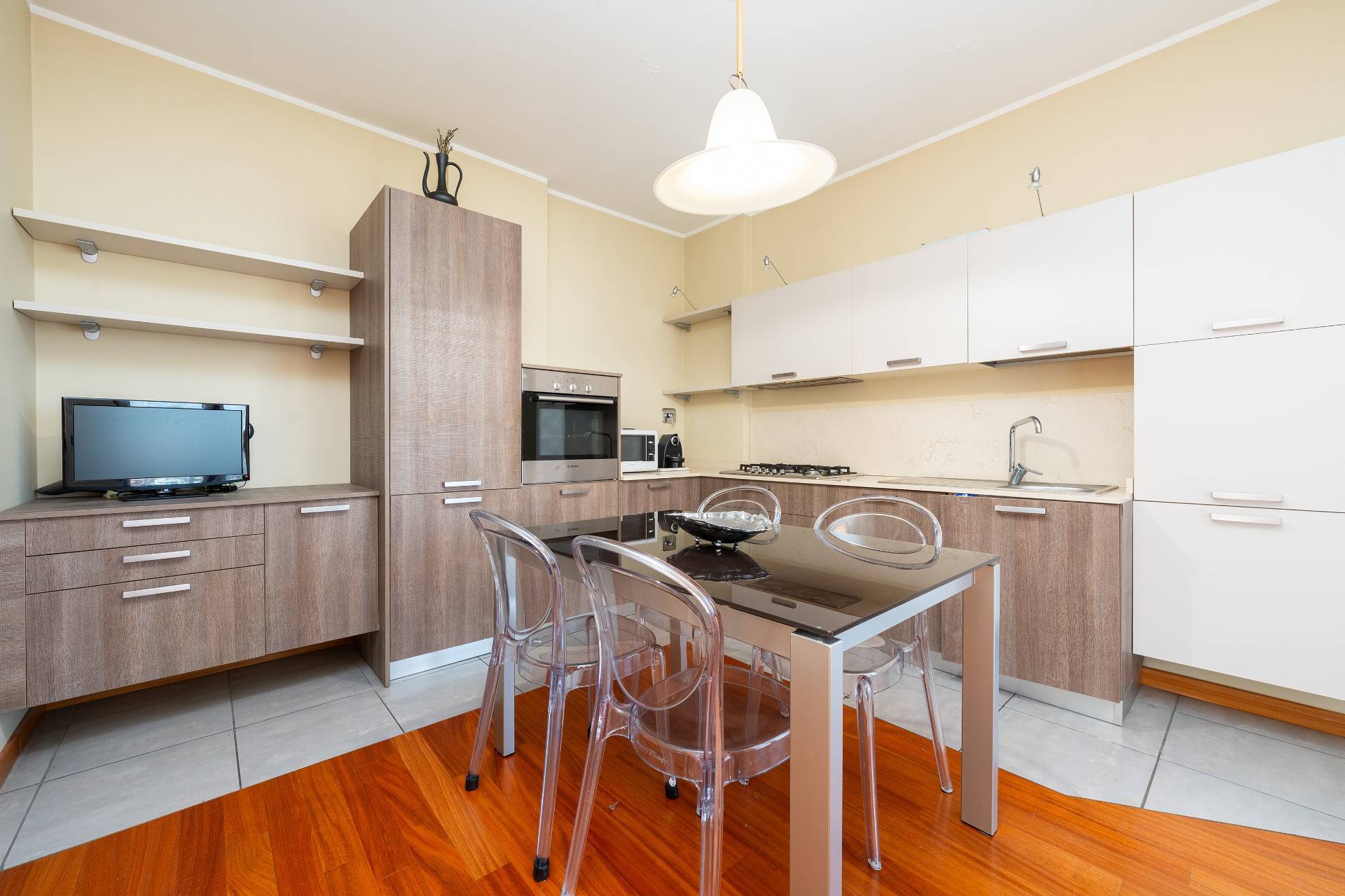Sanitari Sospesi Appartamento completamente palchettato con legno Doussie, Dotato di Tapparelle Elettriche, Riscaldamento a Pavimento, Antifurto, Aria Condizionata Predisposizione Domotica.