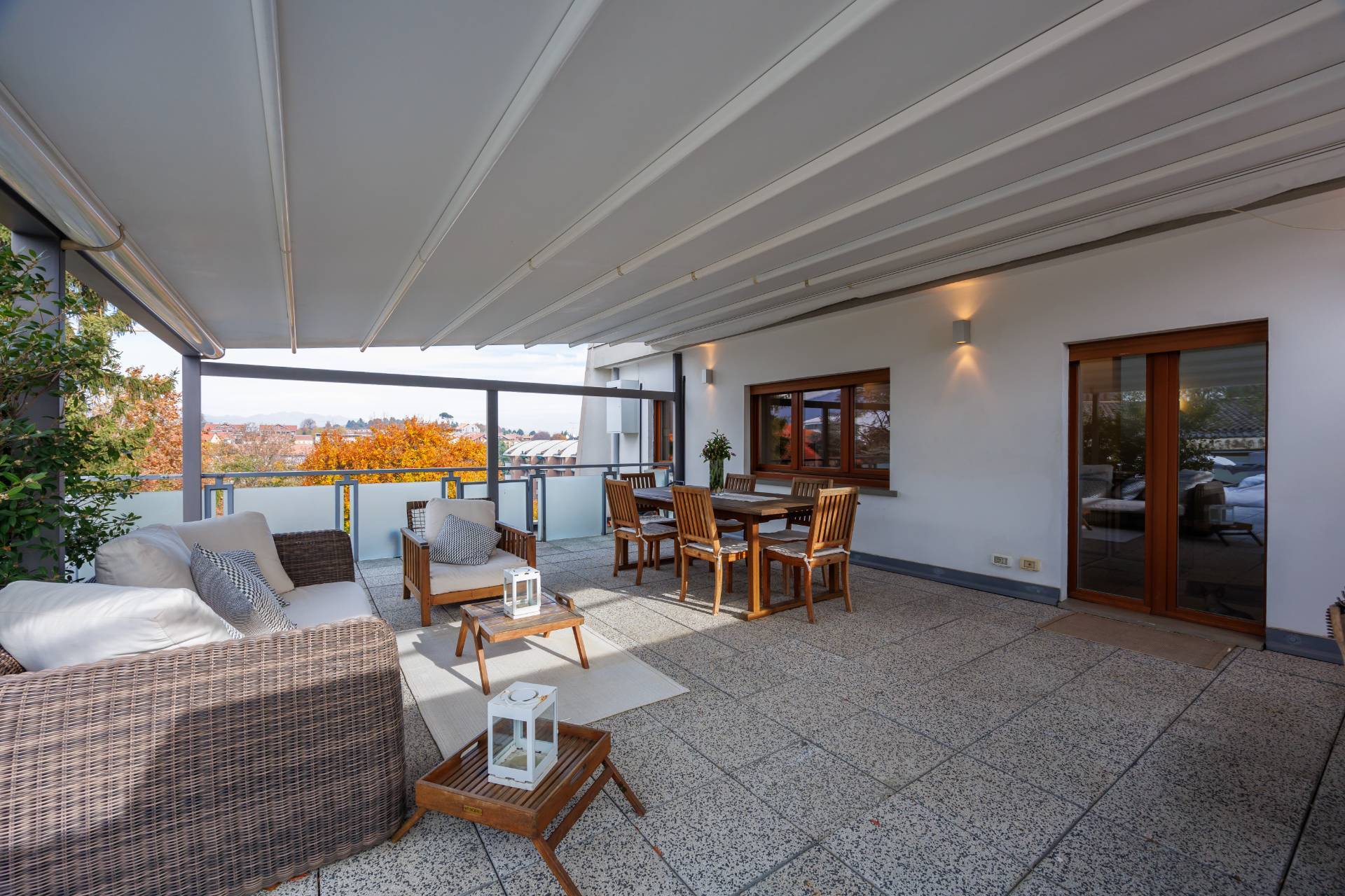 In una delle zone pi riservate e tranquille di Rivoli, sorge questo raffinato attico su due livelli con ampio rooftop dove design e comfort si fondono in perfetta armonia.