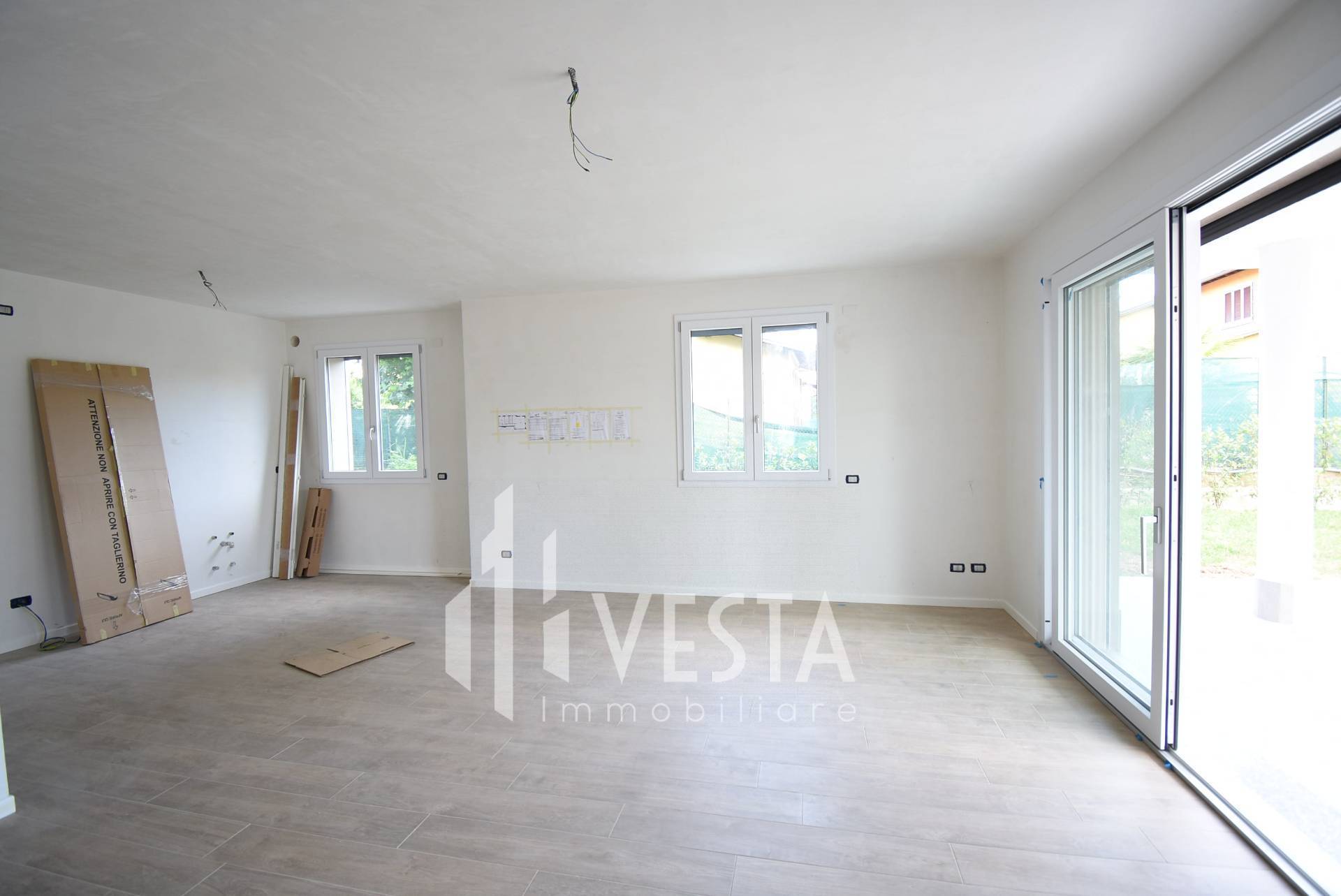 Tutti i locali affacciano sul portico che da sul giardino privato di 244 mq. Possibilit di scelta Box singolo o Box doppio e cantina da quantificare obbligatoriamente a parte.