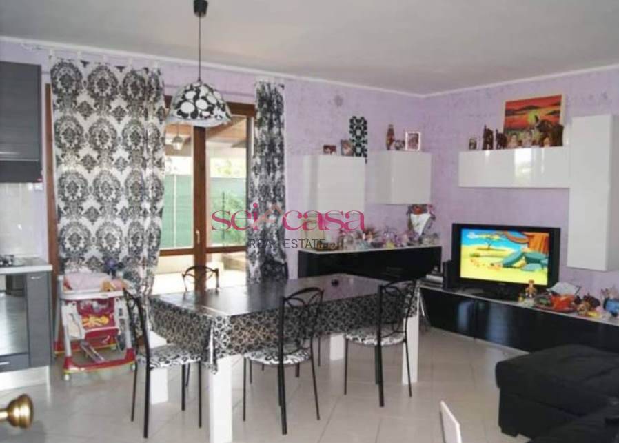 L' appartamento circondato da una corte privata di circa 150 mq posta su tre lati. Dal portoncino blindato si accede all'ampio soggiorno con parete cottura dal quale si ha accesso al giardino, in parte piastrellato, e dove insiste un grande gazebo Dal soggiorno si ha accesso alla zona notte suddivisa in camerina e camera matrimoniale entrambe con porta finestra che danno accesso al giardino, bagno con vasca.