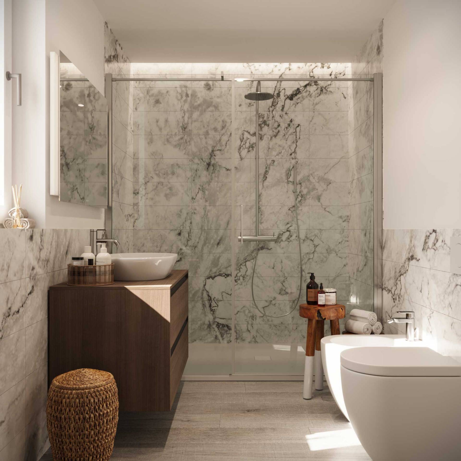 Al secondo piano troviamo TRILOCALE composto da: ingresso, salone con angolo cottura, camera, cameretta, disimpegno, 2 bagni e balcone di 20 mq. La struttura finemente rifinita e con materiali di pregio presenta molti comfort quali sistemi di domotica, pannelli solari e pompe di calore che sono solo alcune delle caratteristiche di questa splendida propriet.
