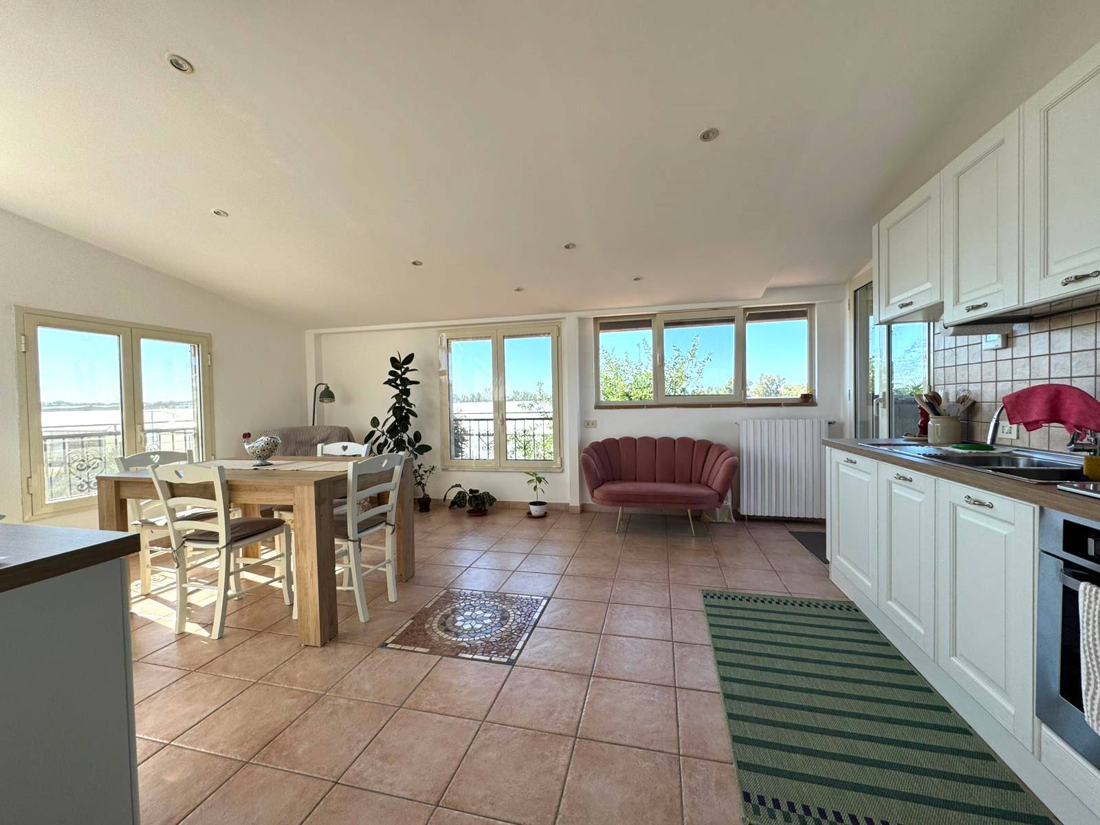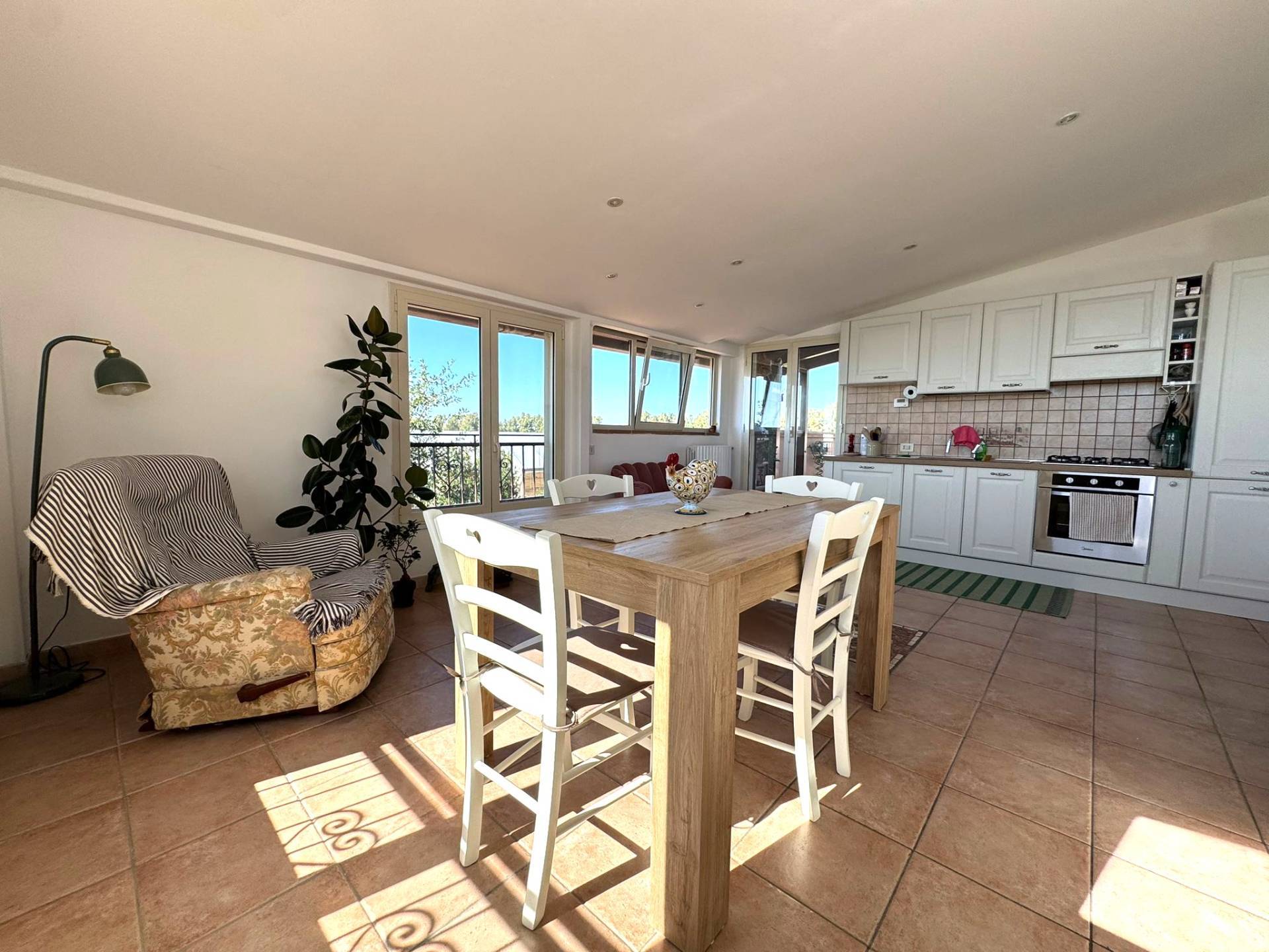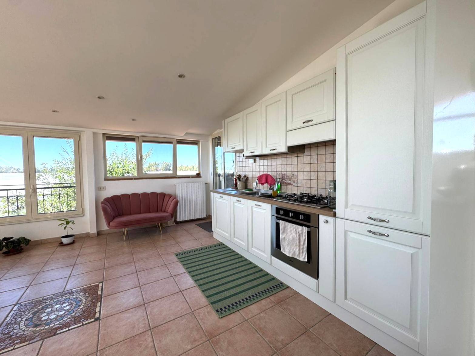 La propriet si sviluppa su un unico livello, posizionata al secondo piano di tre, gode di un'esposizione ottimale, sempre luminosissima visto l'affaccio a sud est ed ovest, in condizioni eccellenti ed composta da un ampio salone, una cucina tinello di circa 20 mq arredata ed equipaggiata di tutti gli elettrodomestici, due camere da letto, un grande bagno con la possibilit di realizzare anche il secondo servizio, un balcone di 6 mq cca ed un terrazzo di 25 mq cca arredato e fruibile tutto l'anno. Completa la propriet un pratico locale lavanderia di 6 mq cca. La facciata della villa stata completamente rifatta meno di 2 mesi fa, incluso il rifacimento dei muretti perimetrali e della pavimentazione che attualmente sono entrambi in porfido.