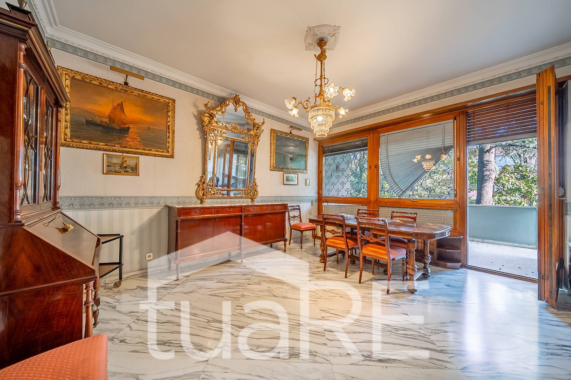 L'appartamento situato in uno stabile signorile ristrutturato e nonostante sia posto al primo piano presenta affacci alti e gode inoltre di una meravigliosa vista panoramica sul parco.