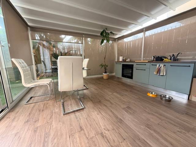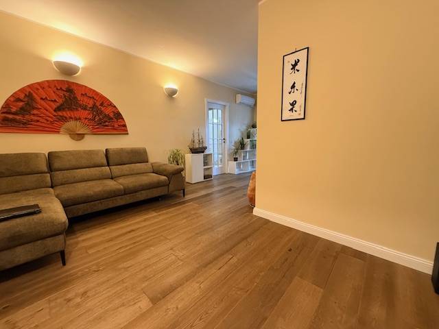 Si presenta come un soggiorno con angolo cucina camera bagno e giardino climatizzato dotato di cantina e posto auto coperto di proprieta' con cancello automatizzato.