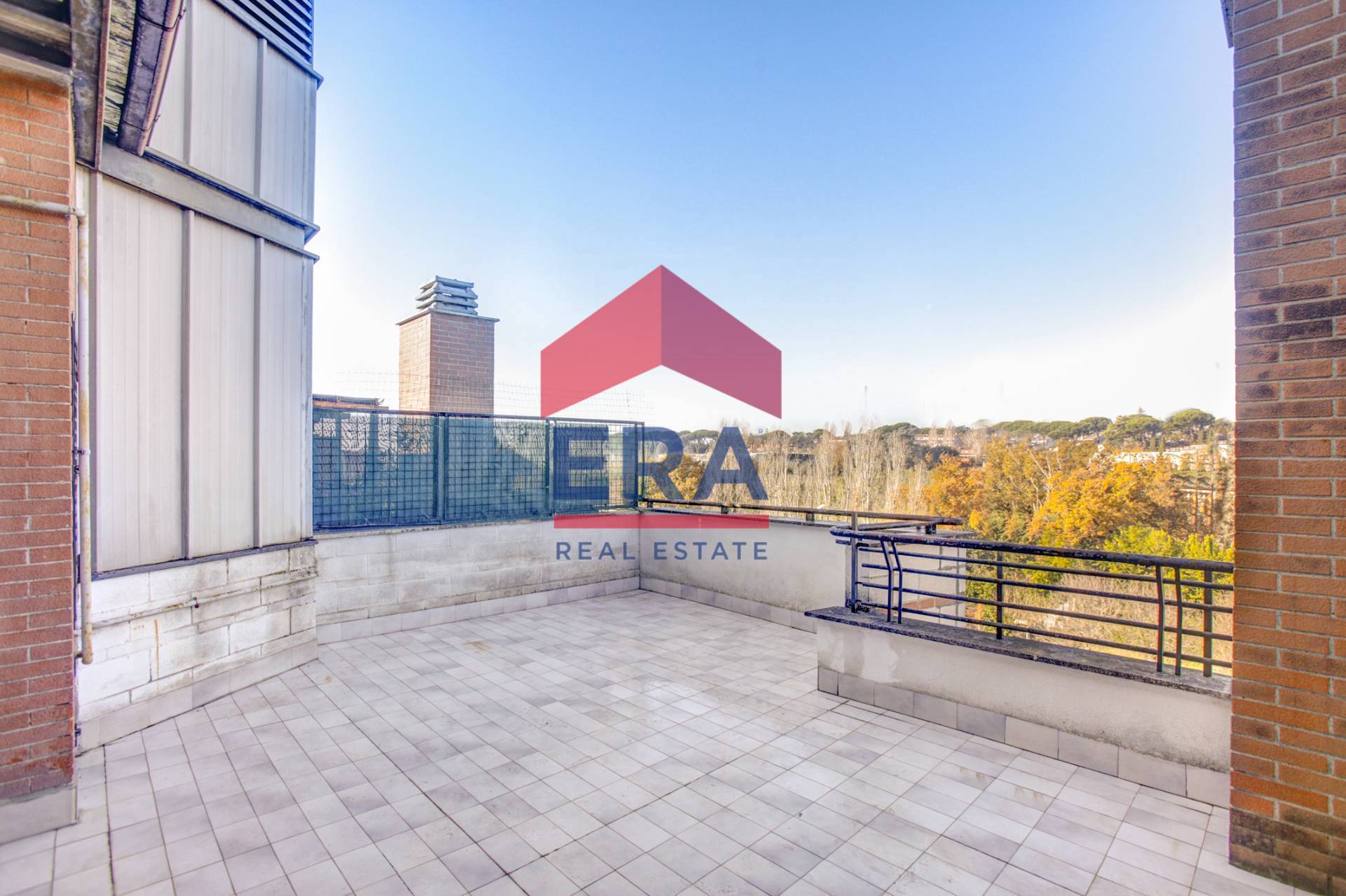 In vendita a Roma, nella zona di Cassia-Olgiata, si trova questo spazioso attico su due livelli, libero al rogito e in buone condizioni.