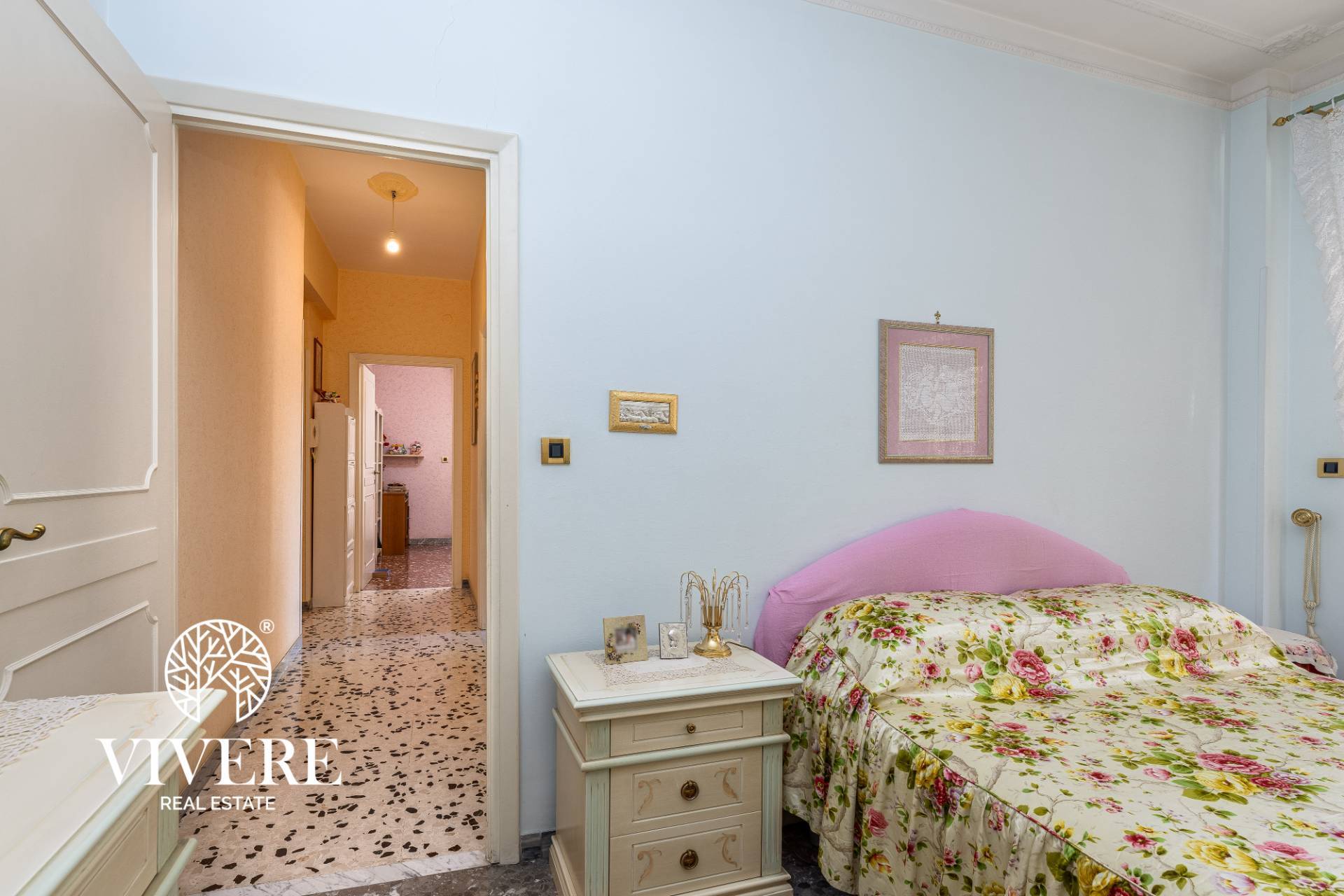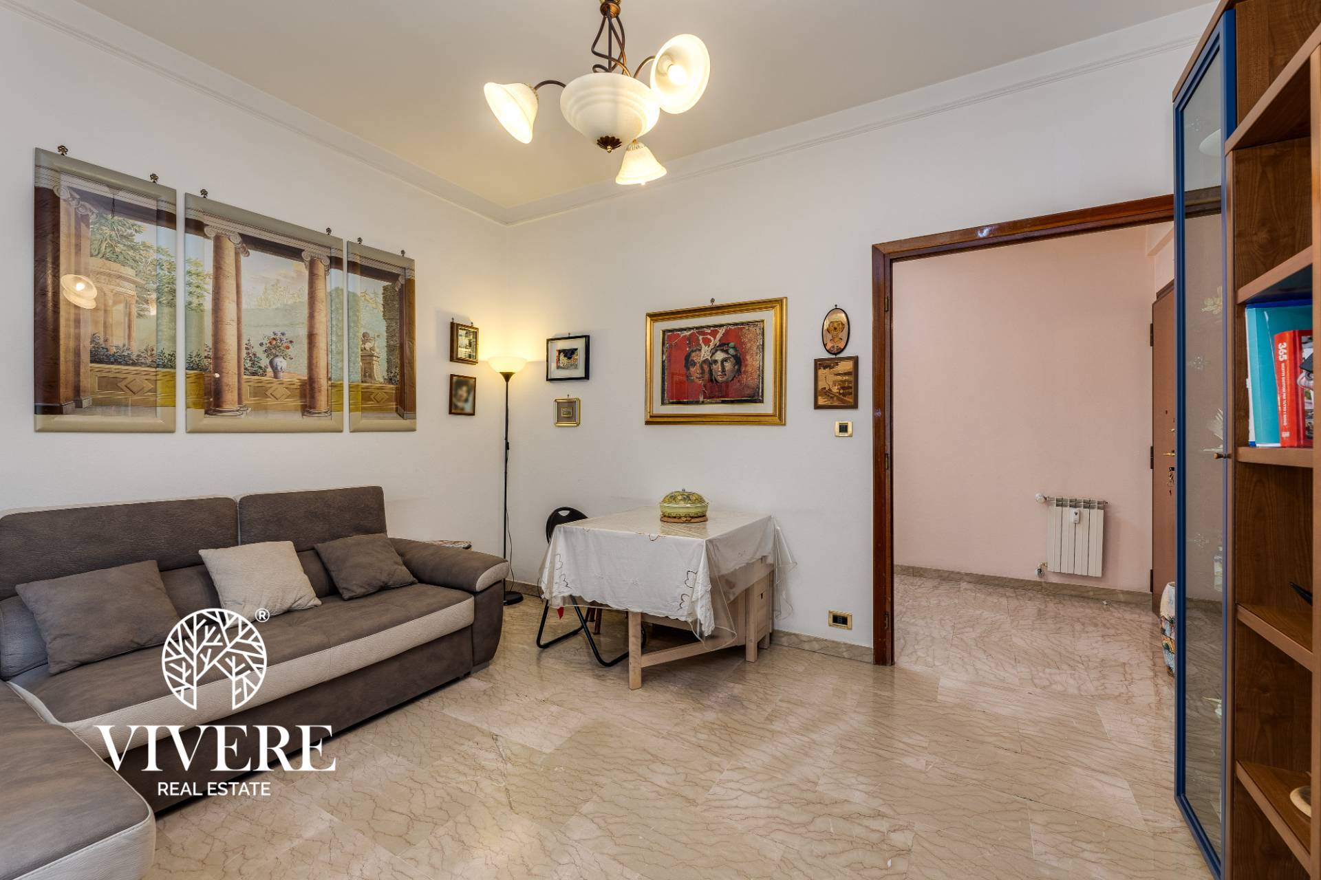 L'immobile, con doppia esposizione e in buono stato, cos composto: Ingresso Soggiorno Due camere matrimoniali Cucina Servizio finestrato Due balconi Lappartamento in buono stato interno ed dotato di porta blindata, pavimenti in marmo e ceramica, riscaldamento centralizzato con contabilizzatori.