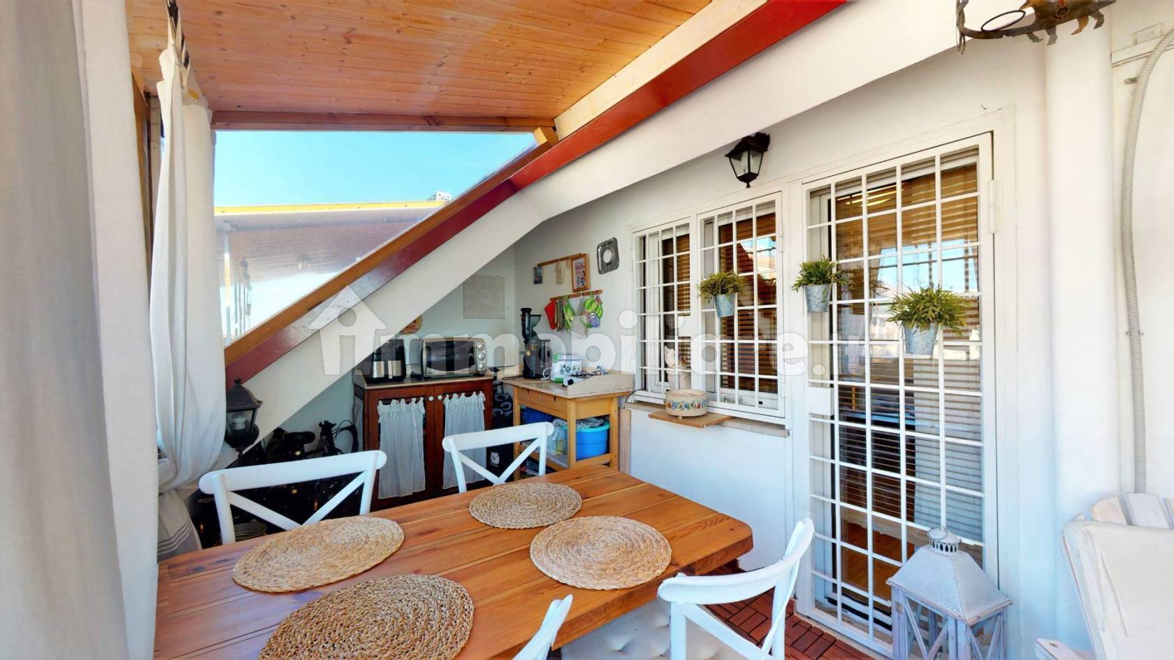 VILLA GORDIANI: SUPER ATTICO OTTIMO STATO Villa Gordiani / Via Genazzano Proponiamo in vendita appartamento SUPER ATTICO in ottimo stato interno, posto al sesto ed ultimo piano allinterno di uno stabile con ascensore, cos composto: Ingresso, salone con camino, cucina separata, disimpegno, due camere da letto, doppi servizi entrambi finestrati con doccia e tre terrazzi.