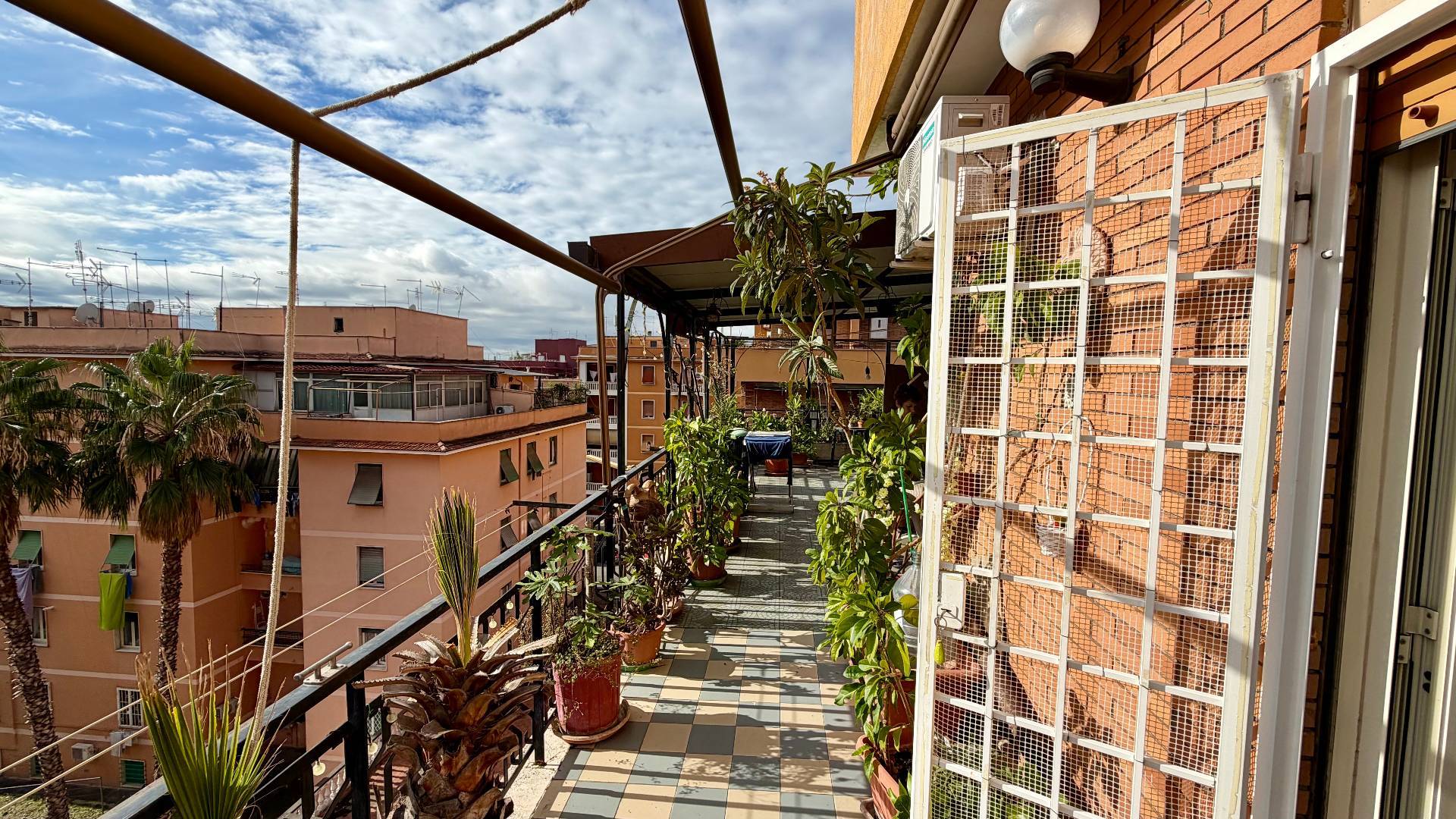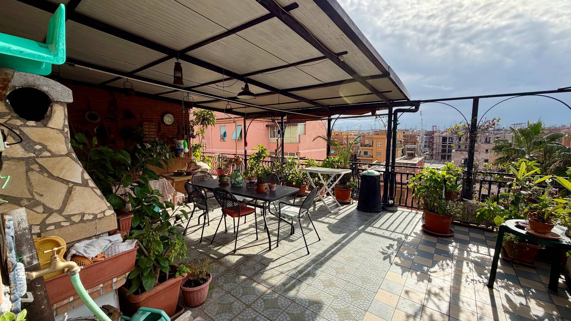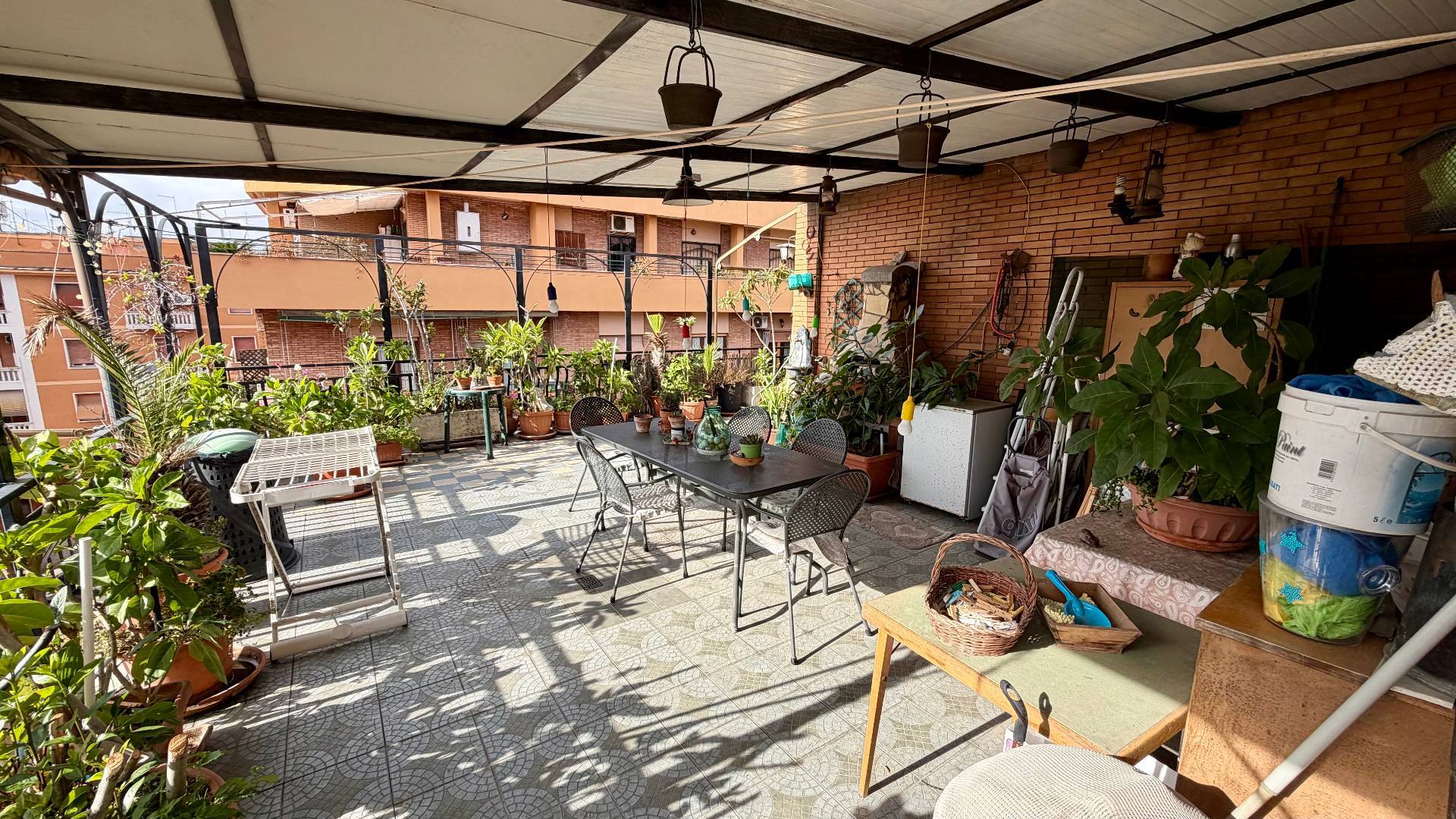 Terrazzo perimetrale di circa 70 mq in parte con tettoia condonata.