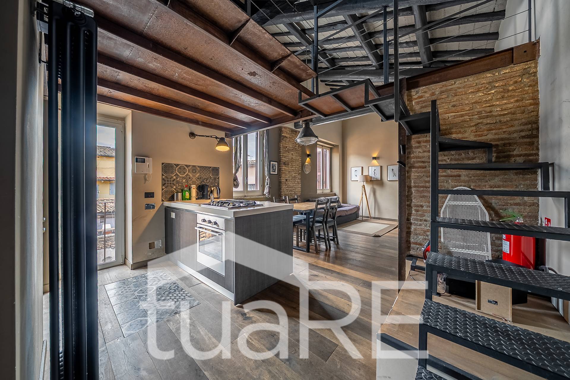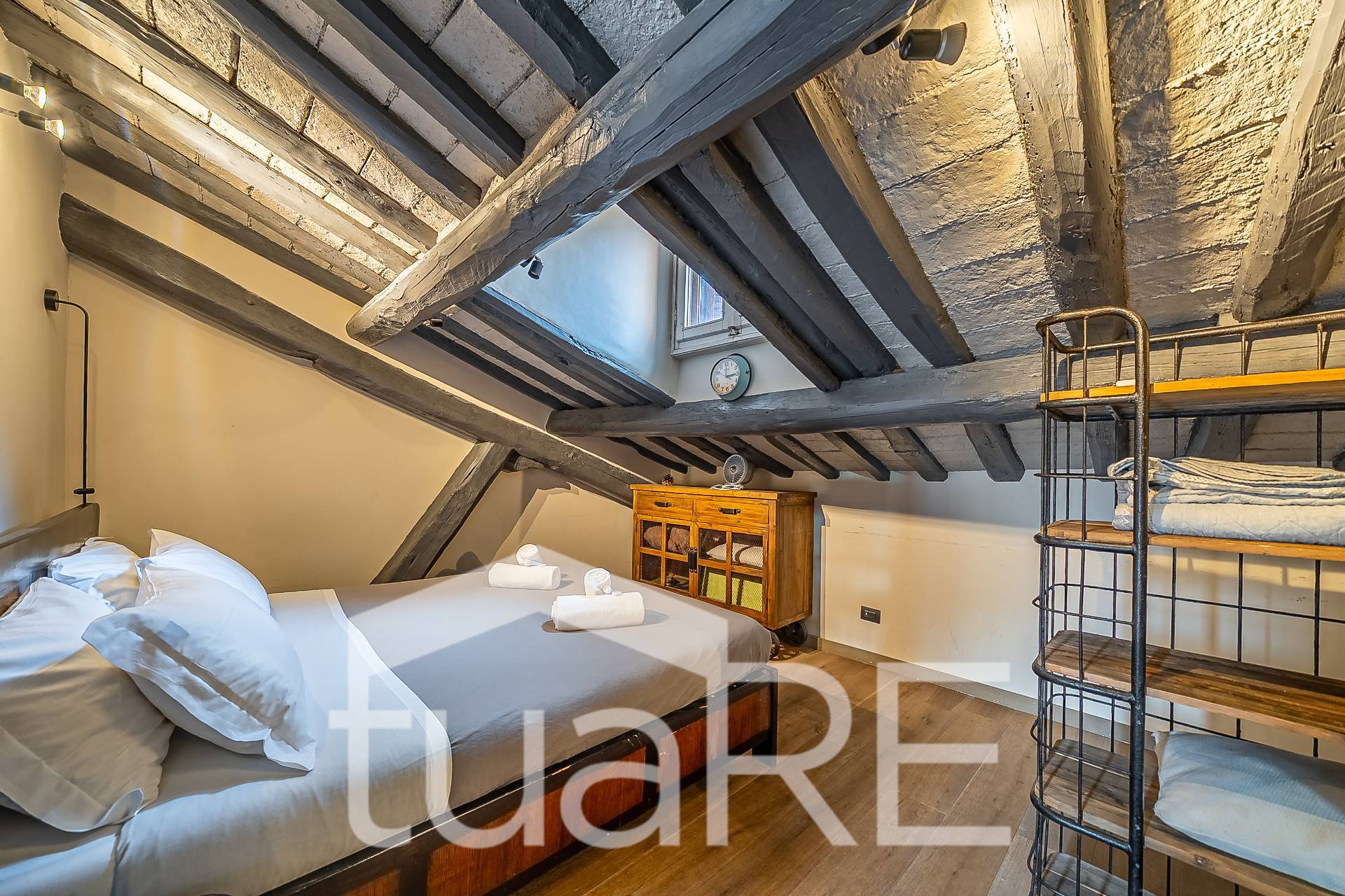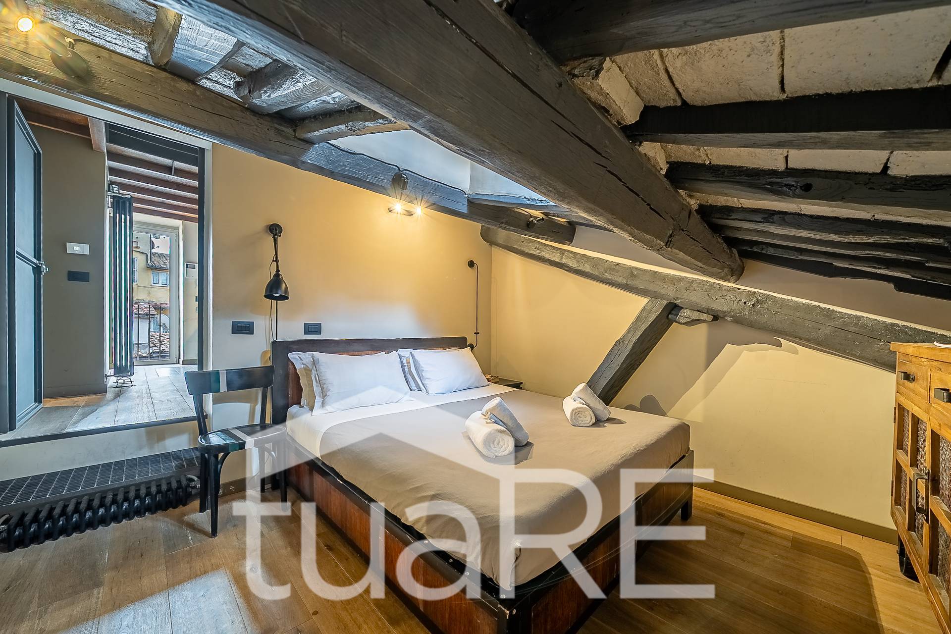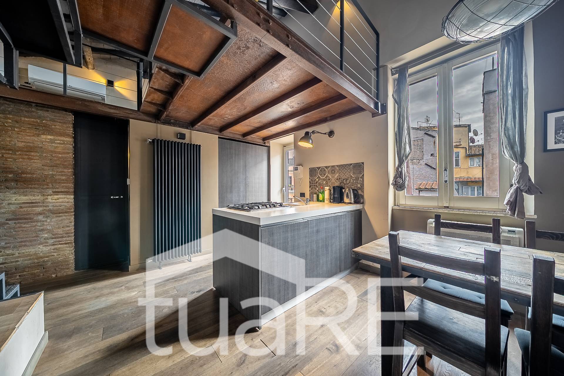 TUA RE Ghetto ad.(Piazza delle Cinque Scole) MERAVIGLIOSO e particolare ULTIMO PIANO UNICO NEL SUO GENERE con splendidi AFFACCI PANORAMICI e luminosi, completamente e FINEMENTE RISTRUTTURATO con materiali di PREGIO, meravigliosi SOFFITTI ALTI e spioventi con TRAVI A VISTA, in splendido STABILE NOBILIARE DEL 1400 TRA I PIU' RICHIESTI DI ZONA, ampio ingresso, salone doppio con cucina a vista, 2 camere matrimoniali, servizio, ripostiglio.
