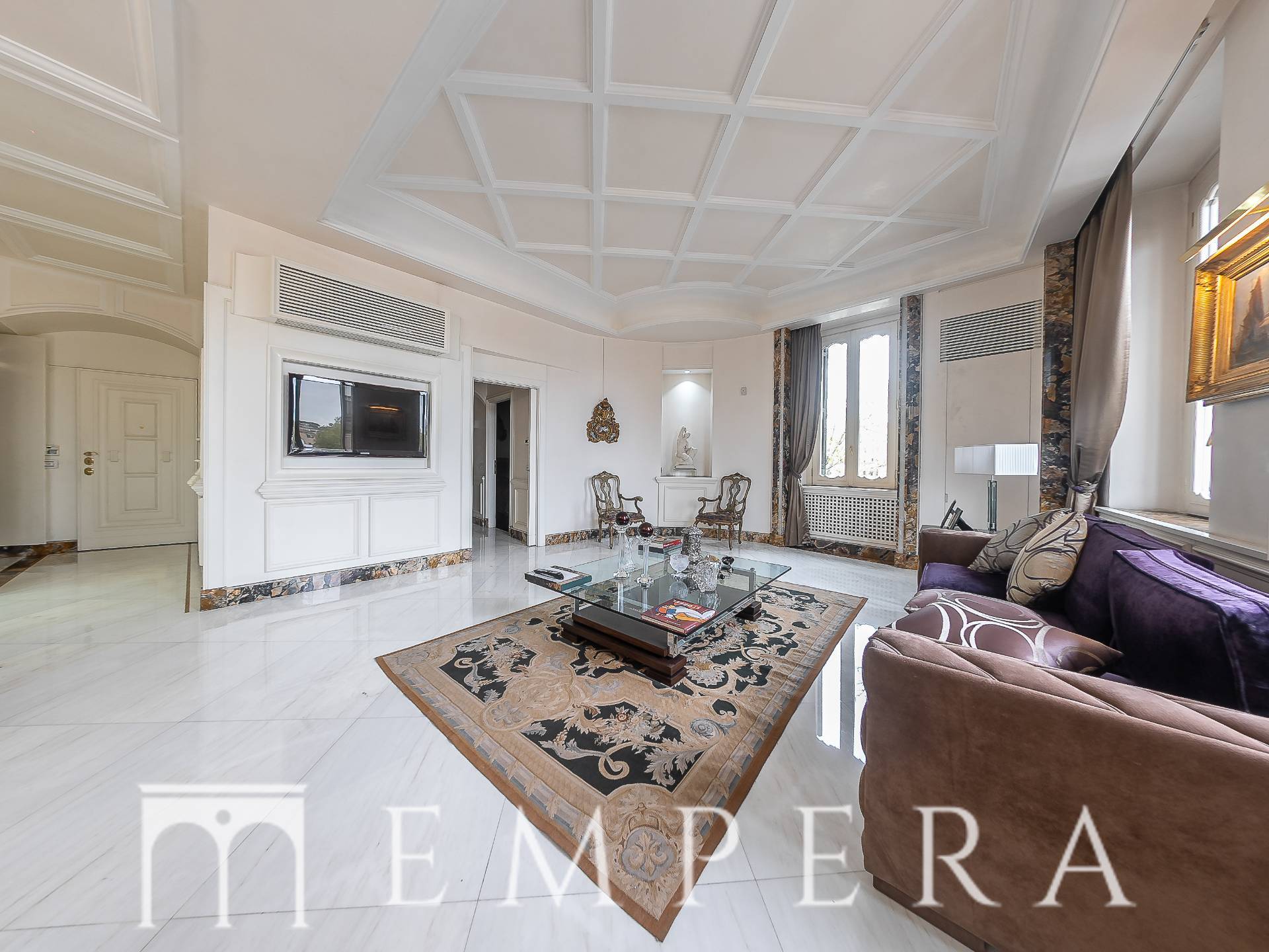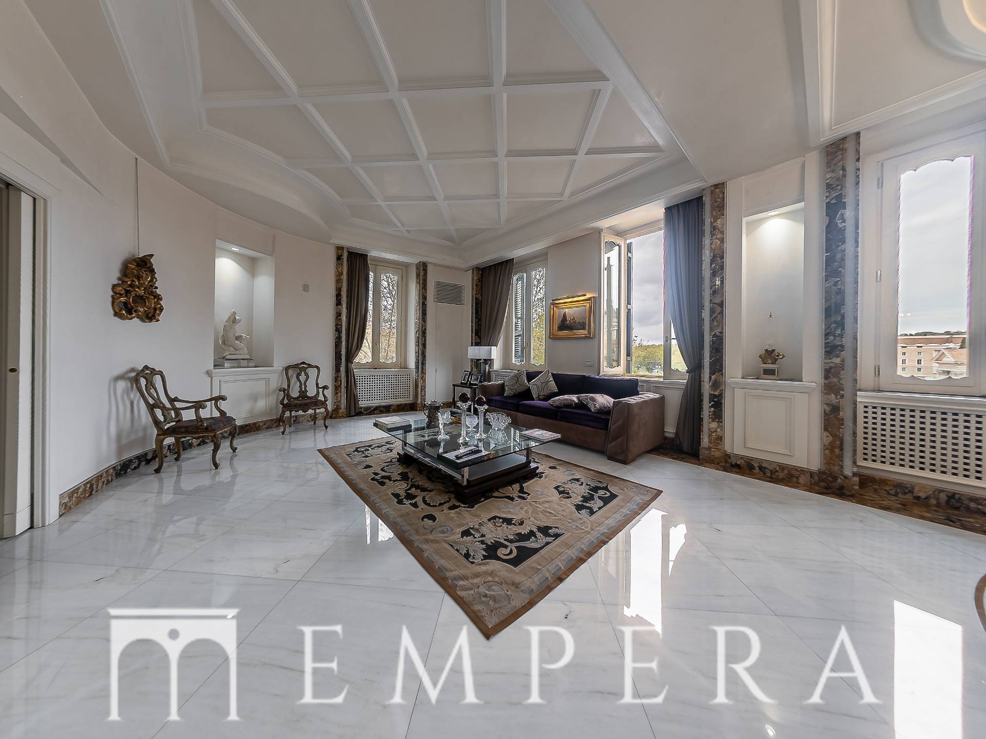 L'appartamento, di ampia rappresentanza, posto al 3° piano e gode di splendidi affacci aperti angolari sul Tevere, il museo dell' Ara Pacis, le cupole di Piazza del Popolo, Via del Corso e Via di Ripetta; al suo interno si presenta completamente e finemente ristrutturato con materiali di alto pregio.