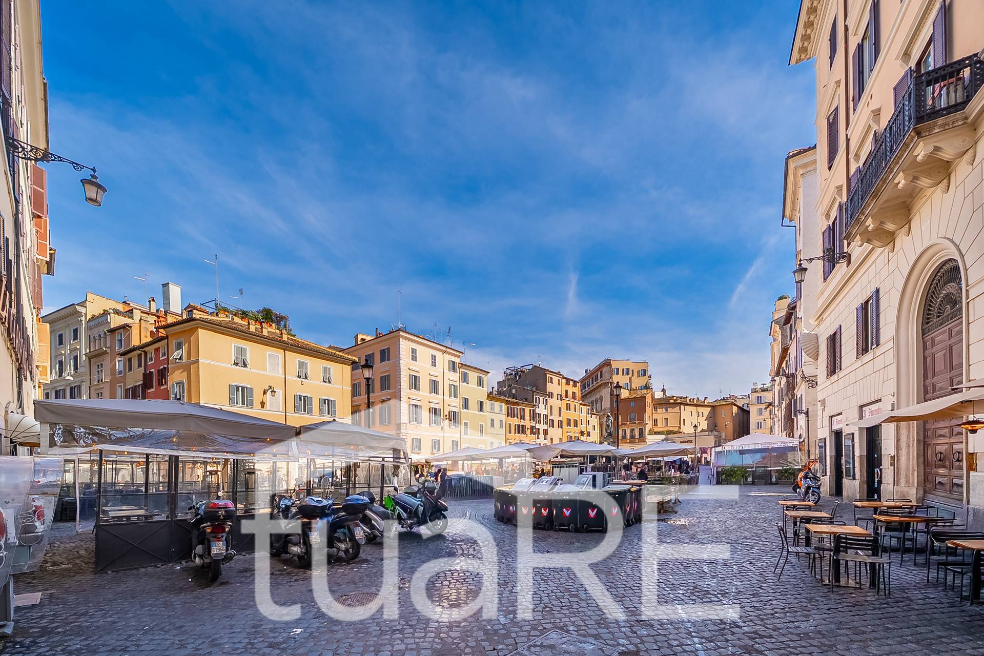 TUA RE Campo de' Fiori (Via dei Cappellari) OCCASIONE unica, delizioso PIANO ALTO con CARATTERISTICI AFFACCI ESTERNI, silenzioso, COMPLETAMENTE RISTRUTTURATO, in splendido stabile d'epoca, ampio ingresso, salone con cucina a vista, camera matrimoniale, servizio, ripostiglio.
