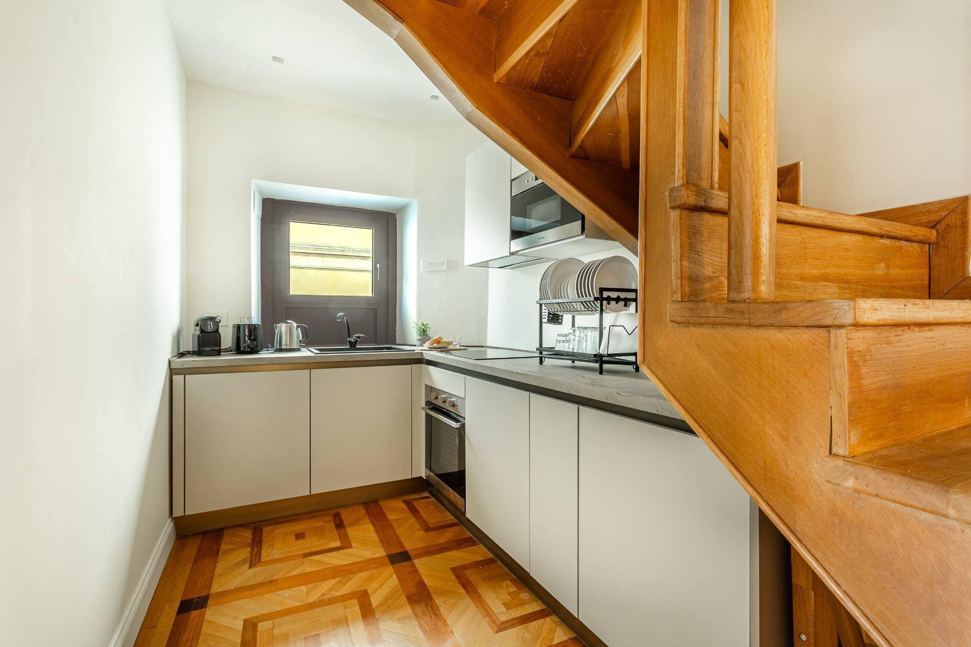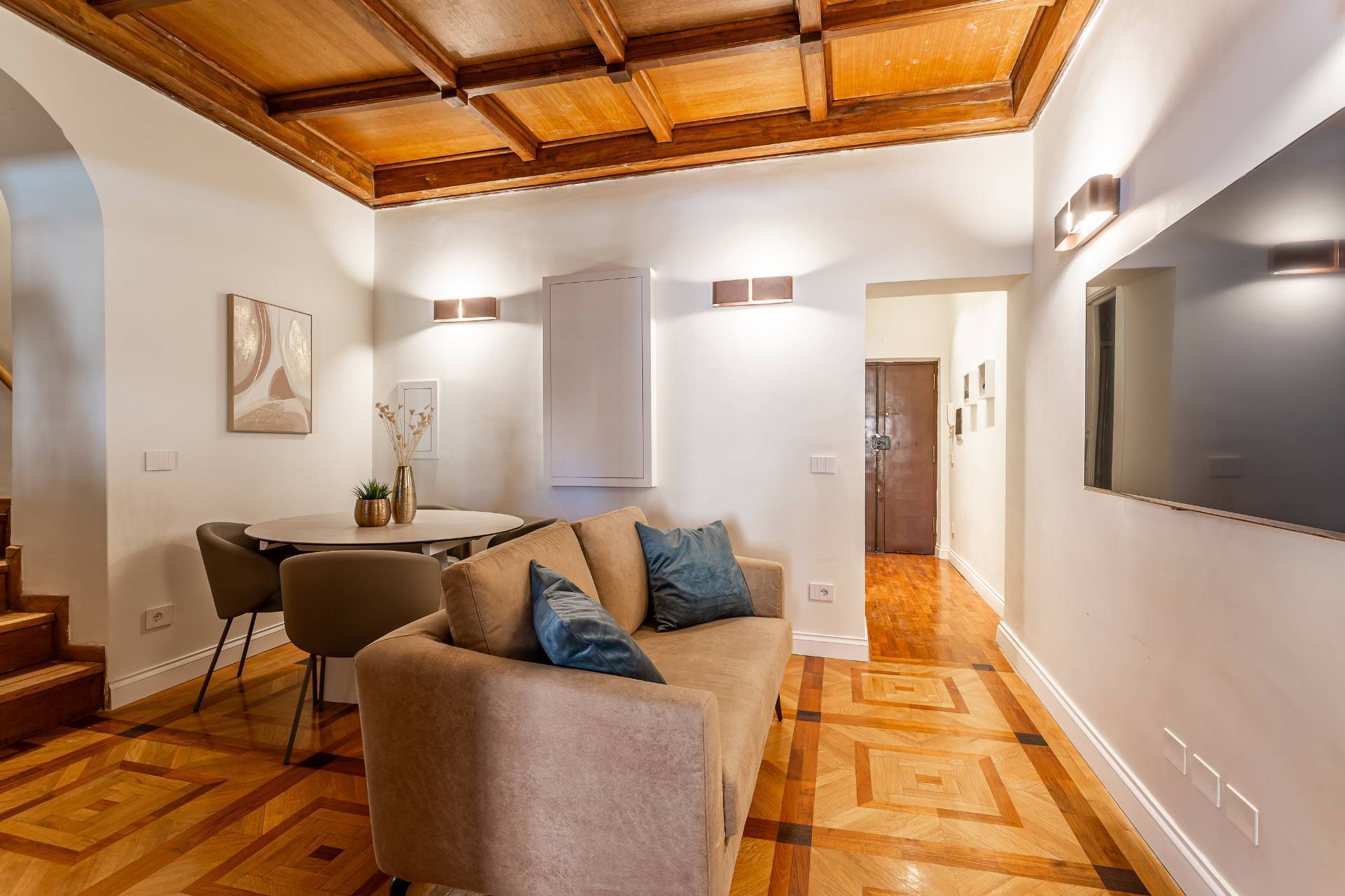 Limmobile si compone di: una zona living dal design contemporaneo perfettamente integrata con gli elementi storici angolo cottura completamente arredato e funzionale tre ampie camere matrimoniali, tutte con affaccio diretto sulla piazza tre bagni, di cui due en suite Al livello superiore, una vera sorpresa: una spa privata, con bagno di vapore e zona relax, uno spazio esclusivo dedicato al benessere, praticamente introvabile in immobili di questo contesto.