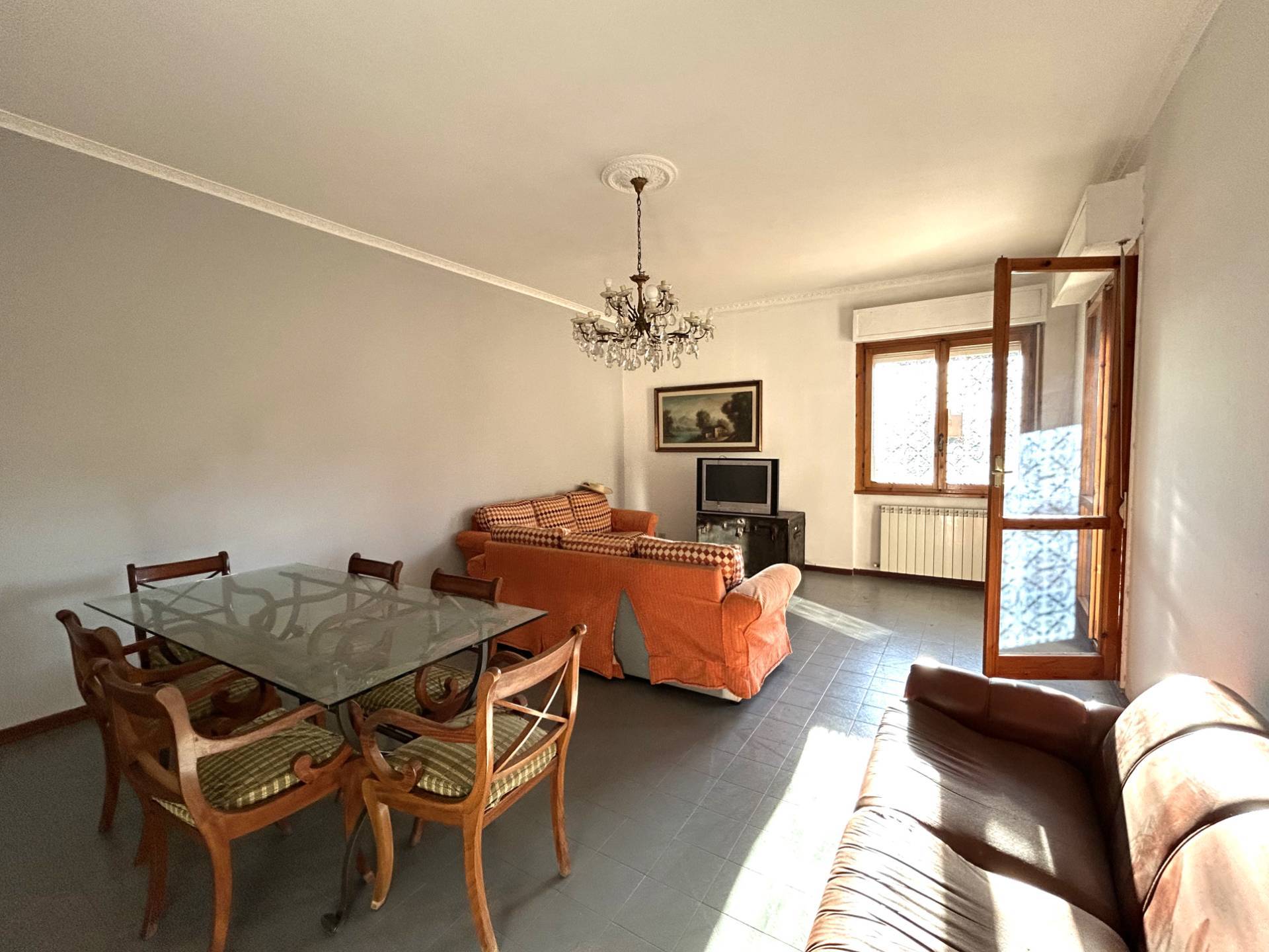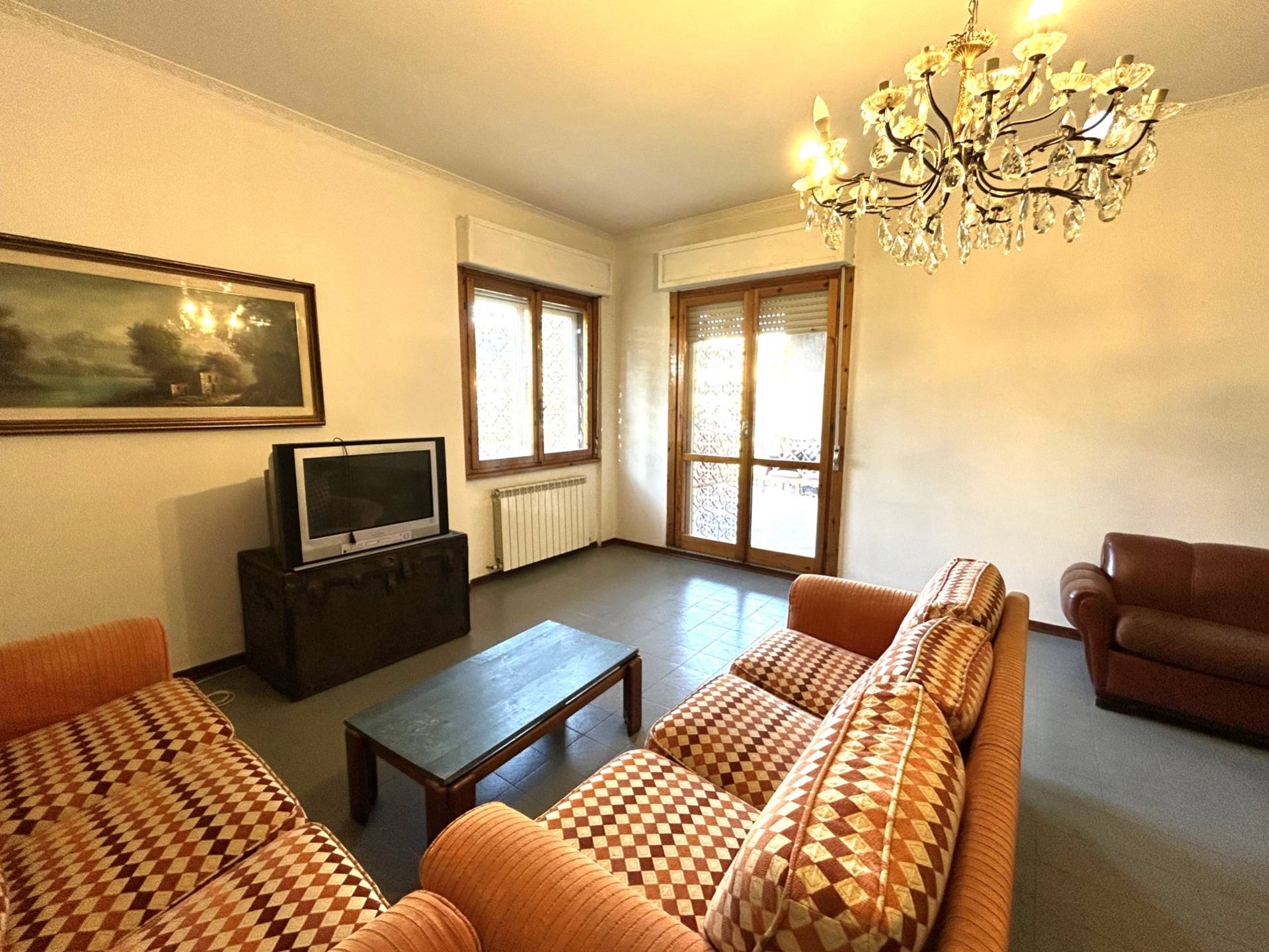 Limmobile cos composto: Ingresso spazioso che conduce a un salone doppio con accesso diretto alla terrazza abitabile, affacciata sul verde con vista aperta.