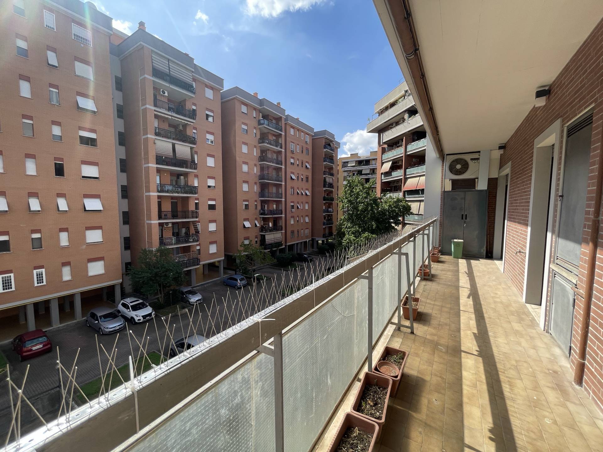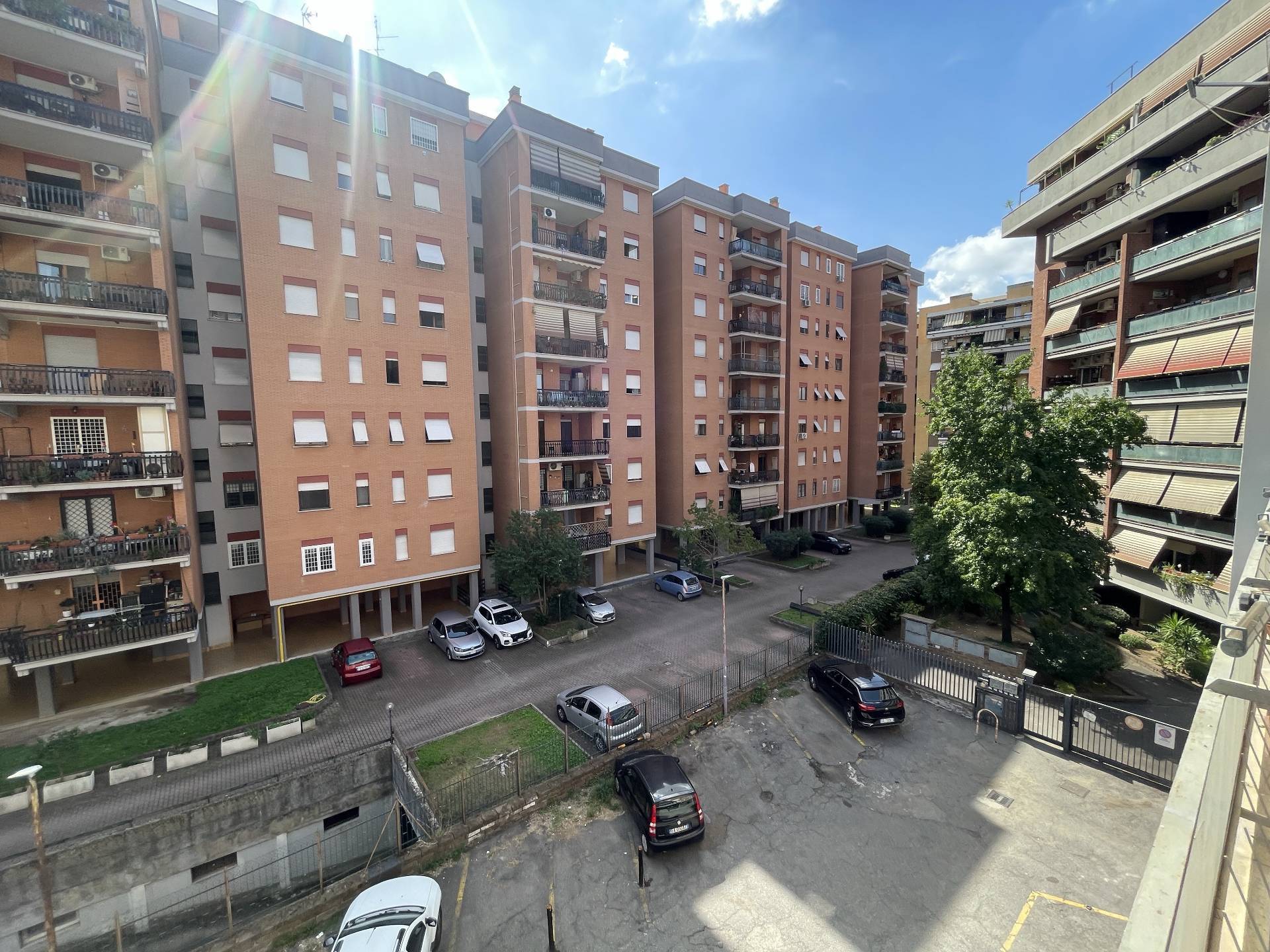 vendiamo un appartamento a Roma in zona Cinecitt e pi precisamente in Via Libero Leonardi in stabile signorile in tinta e cortina di otto piani proponiamo un terzo piano con affaccio tutto esterno esposto a sud sul giardino condominiale composto da un ingresso con soggiorno a vista e cucina arredata 1 camera matrimoniale e 2 camere singole doppi servizi con sanitari sospesi di cui uno cieco con areazione forzata 2 armadi a muro balconato con tende da sole porta blindata e posto auto scoperto Appartamento ristrutturato, climatizzato, serramenti motorizzati.