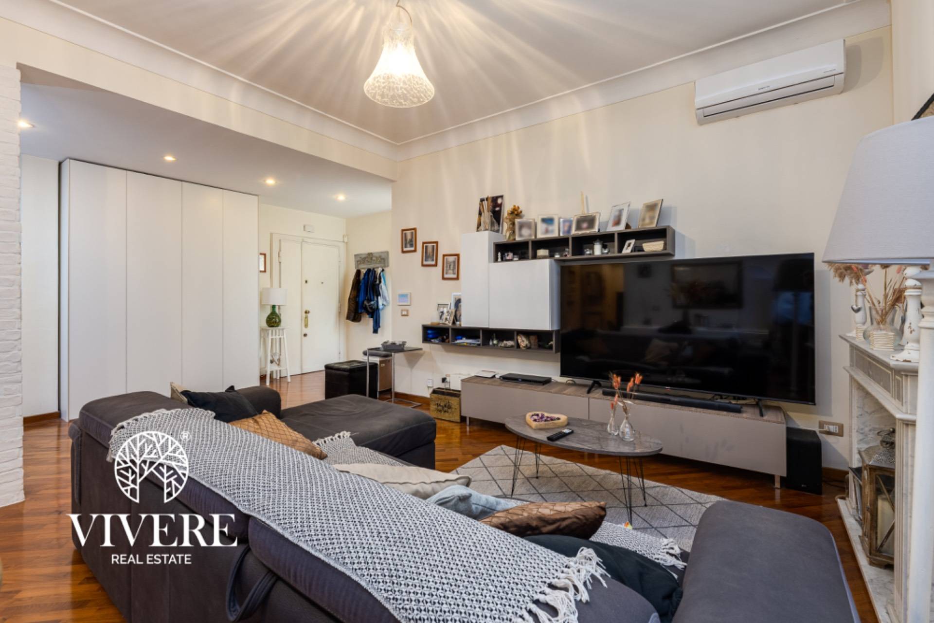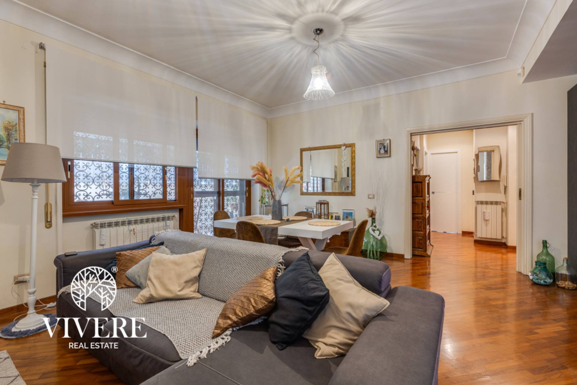 Colli Portuensi, precisamente nella rinomata Via Lorenzo Rocci, VIVERE Real Estate cura la vendita di un ampio trilocale in ottime condizioni interne posto al piano terra di una palazzina in cortina all'interno di un comprensorio residenziale immerso nel verde e dotato di servizio di portineria.