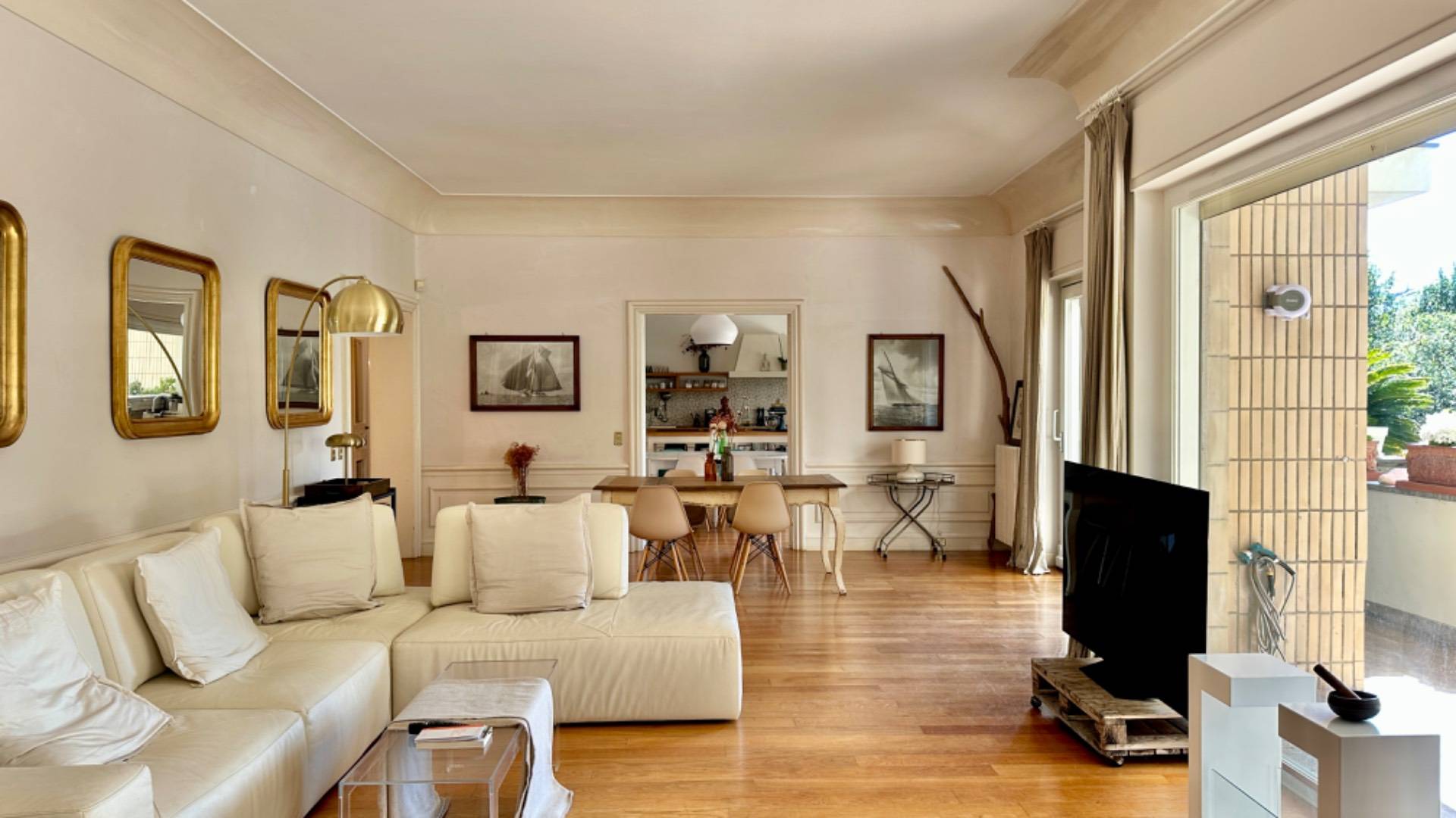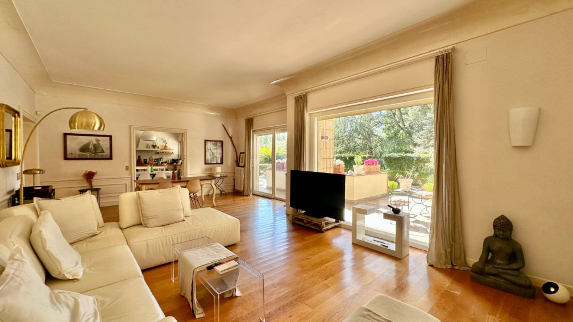 L'immobile si trova al piano terra di un edificio di quattro piani; l'ingresso dellappartamento si apre su un disimpegno che conduce a un ampio salone triplo, illuminato da porte finestre che si affacciano sul patio e sul giardino.