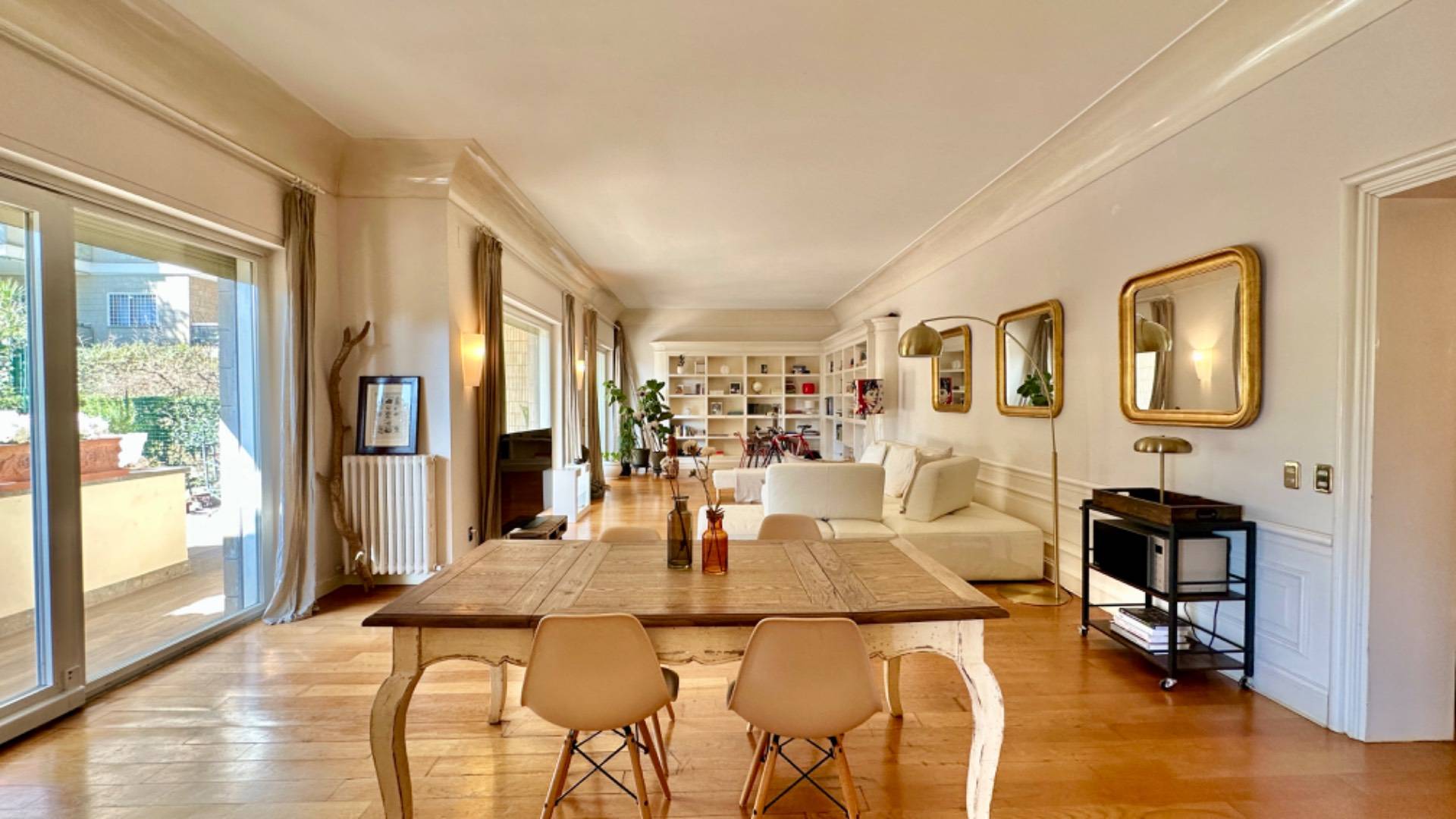 Coldwell Banker lieta di presentare in esclusiva un magnifico appartamento con un giardino privato di 800 mq, situato all'interno di un tranquillo condominio in via Cortina D'Ampezzo, ben curato e mantenuto, con servizio di portineria attivo per garantire privacy e serenit.