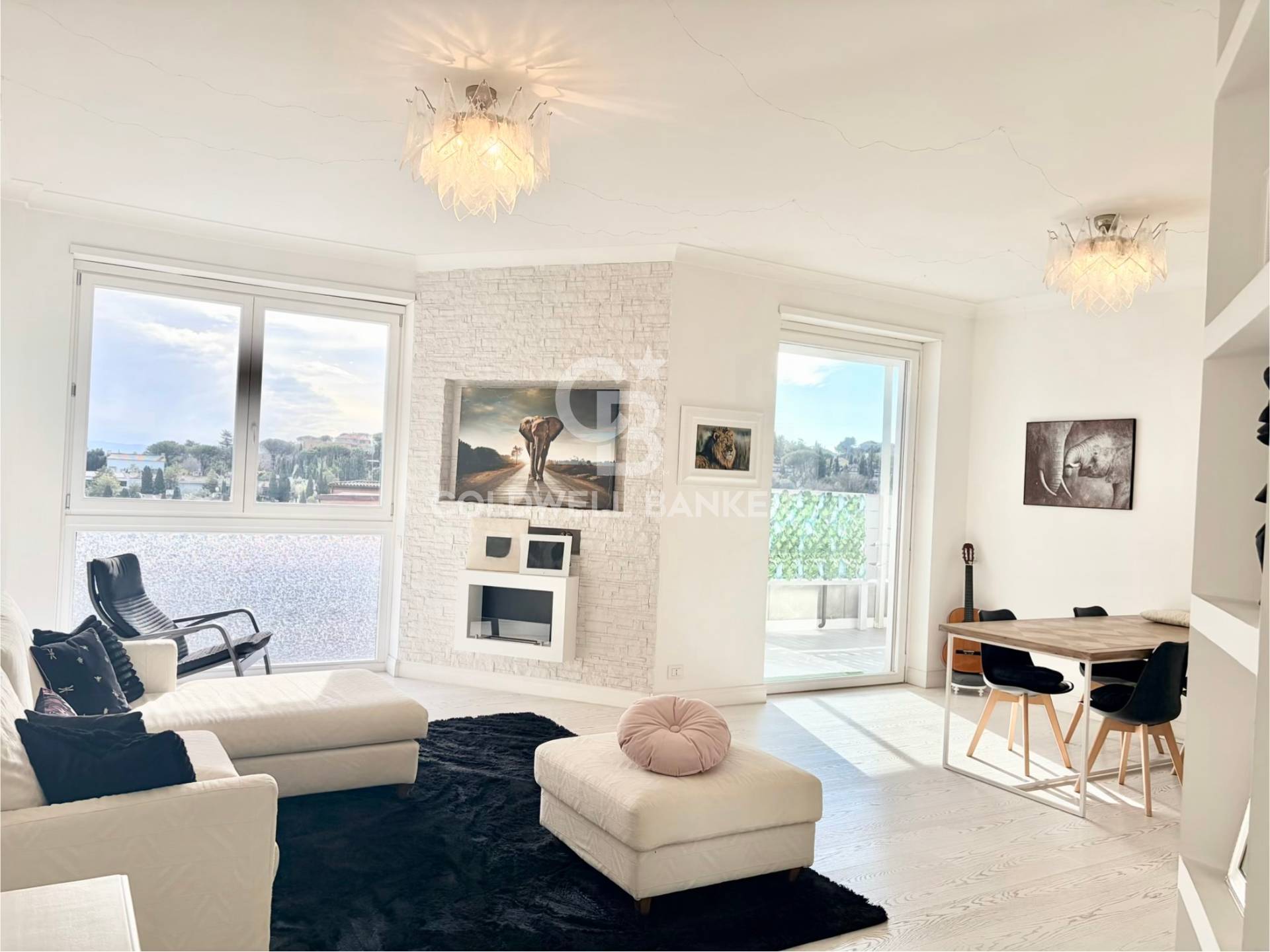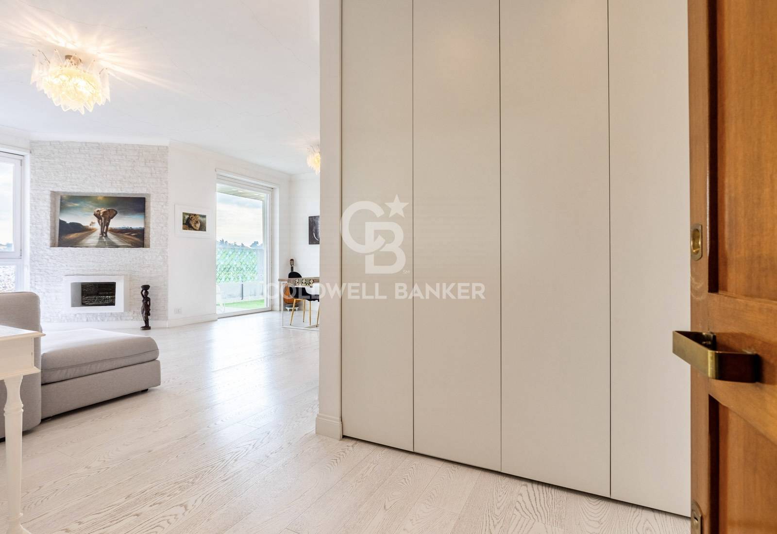 VIALE CORTINA D'AMPEZZO - APPARTAMENTO DI PRESTIGIO - ? 1.250.000,00 Nella zona pi esclusiva di Roma Nord, in una traversa silenziosa di Viale Cortina d'Ampezzo, in un prestigioso complesso residenziale appena ristrutturato con, giardini condominiali , servizio di portineria e videosorveglianza, dotato di doppio accesso anche da Viale Cortina D'Ampezzo, siamo lieti di proporre in vendita un elegante e ristrutturato appartamento con vista mozzafiato fino ai Castelli Romani, posto al terzo piano catastale con affaccio da quarto sul livello strada, che gode di grande luminosit e meravigliosi affacci panoramici nel verde.