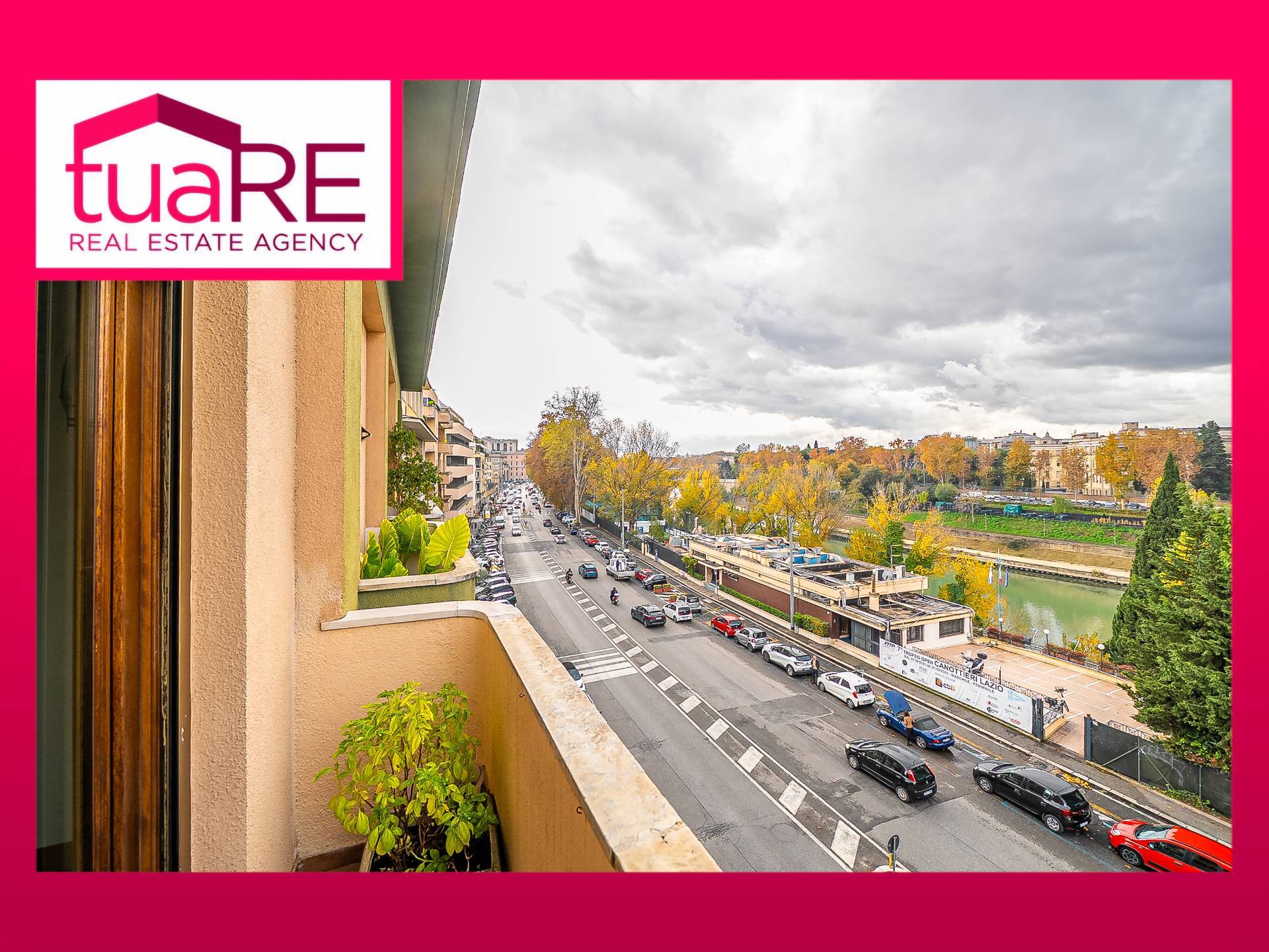 TUA RE Flaminio (Lungotevere Flaminio) MERAVIGLIOSO 4° PIANO di rappresentanza con splendidi AFFACCI PANORAMICI SU ROMA E SUL TEVERE, 2 ampi BALCONI ABITABILI, ampia metratura, ampio ingresso, salone doppio, 3 camere, cucina abitabile, 2 servizi, lavanderia, cantina.