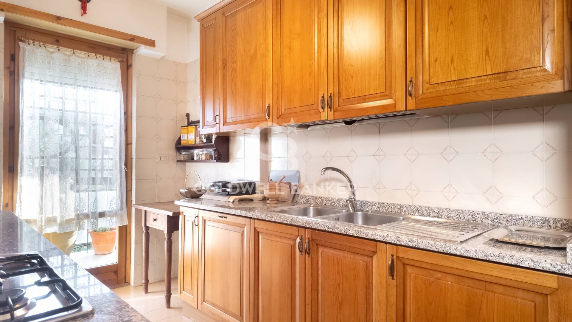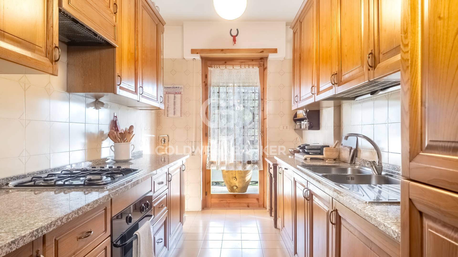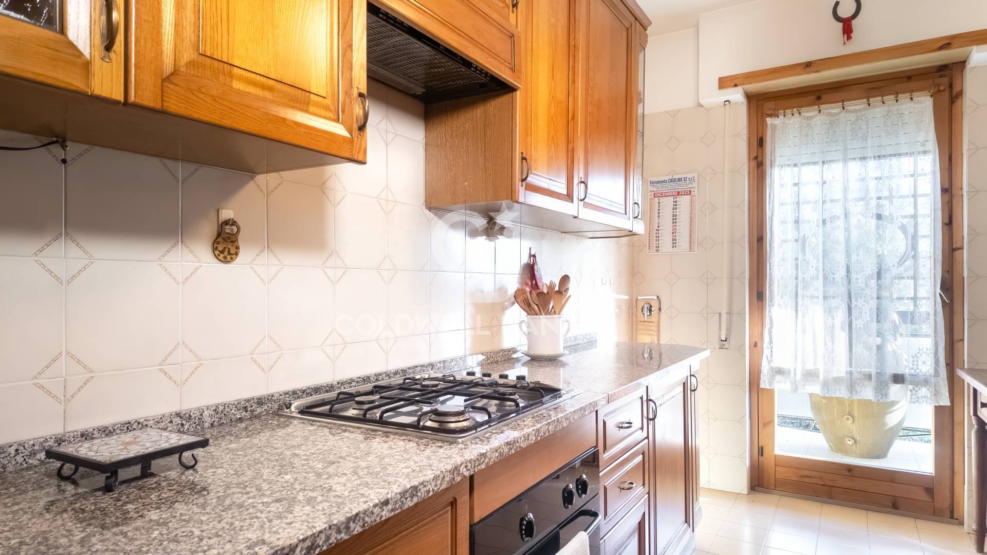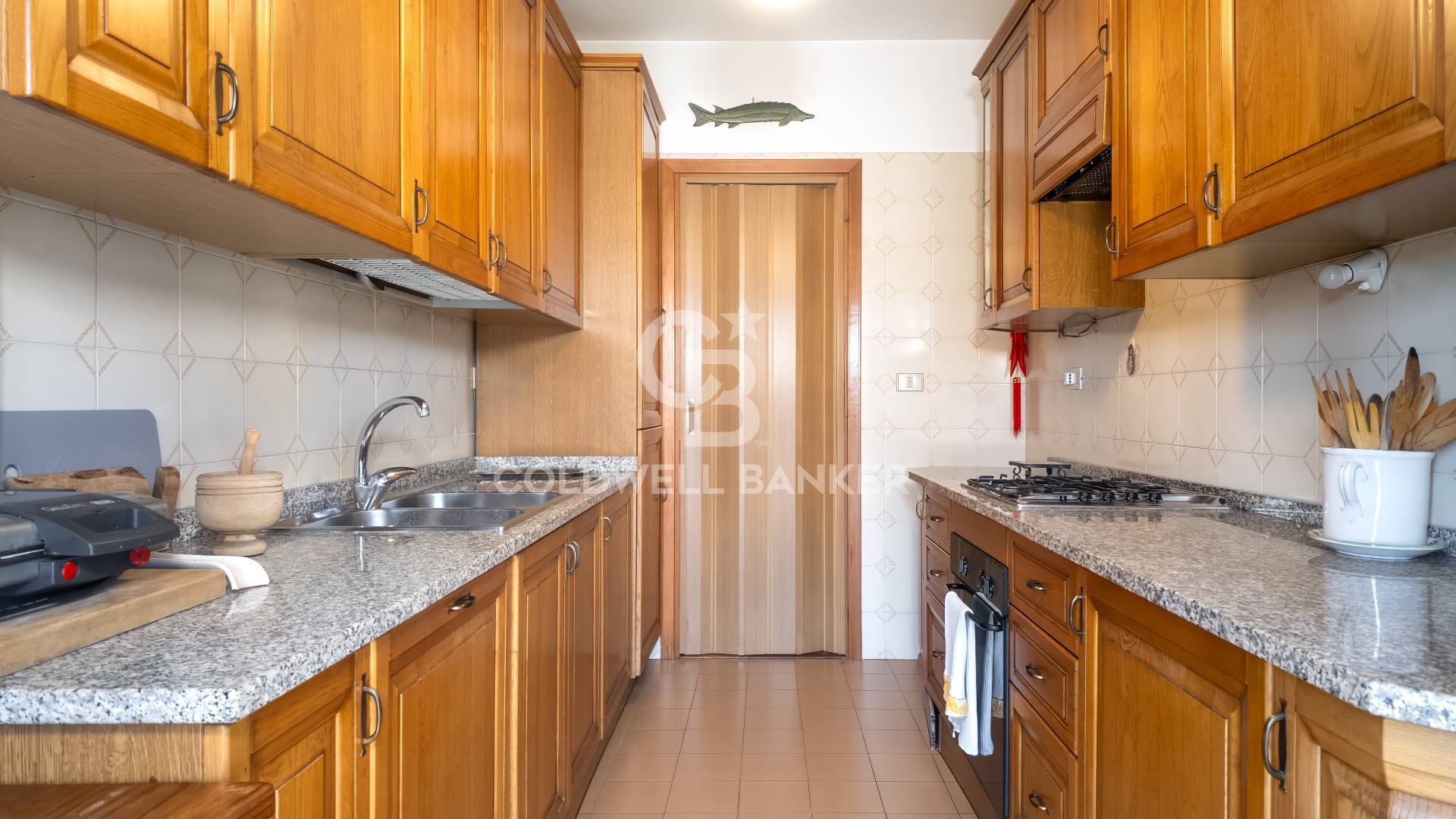 La cucina, dalla forma rettangolare, gode di un piacevole affaccio diretto.