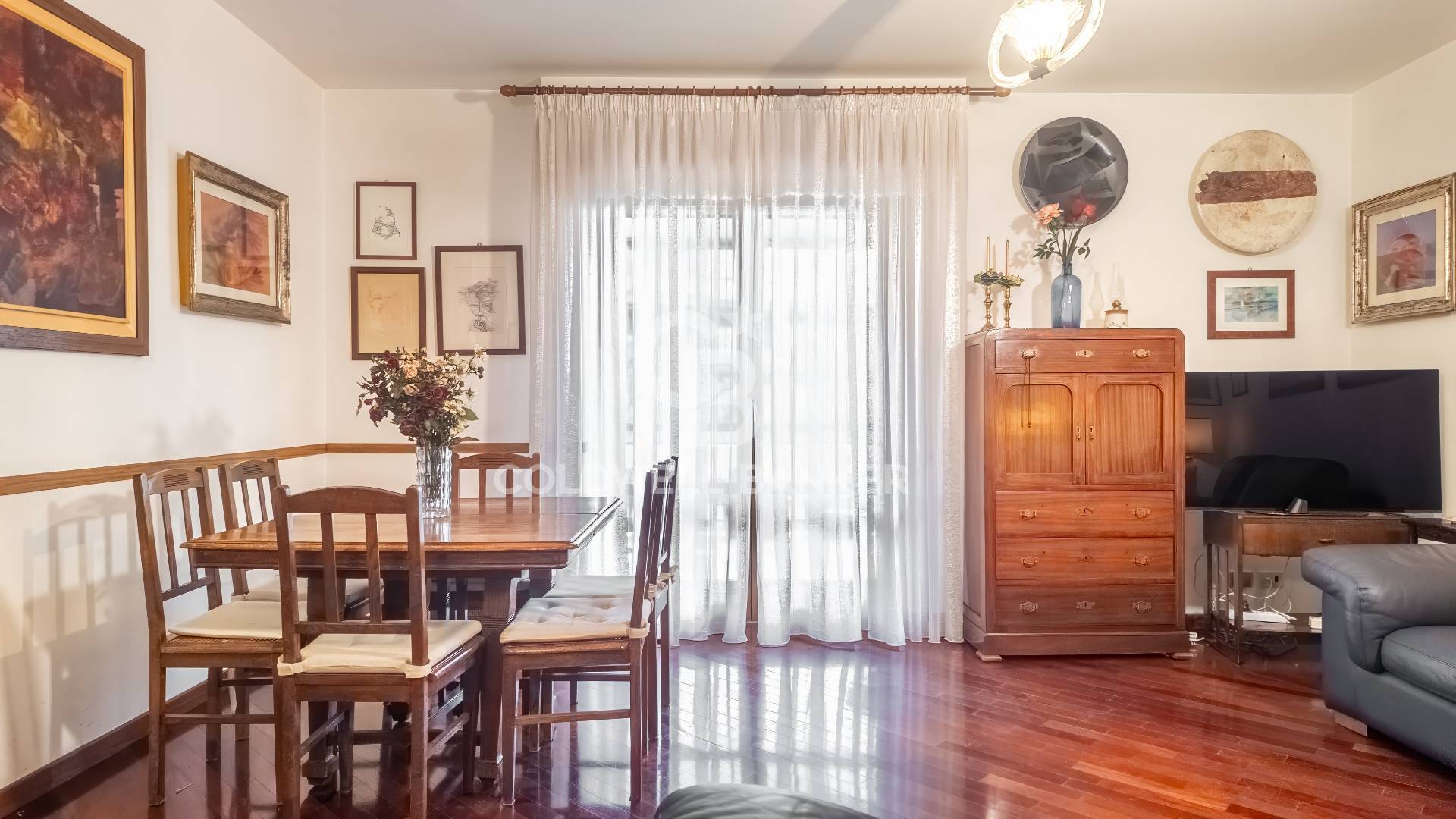 Gli interni sono impreziositi da un elegante parquet che si estende armoniosamente in tutti gli ambienti, incluse le due camere da letto, accoglienti e silenziose.