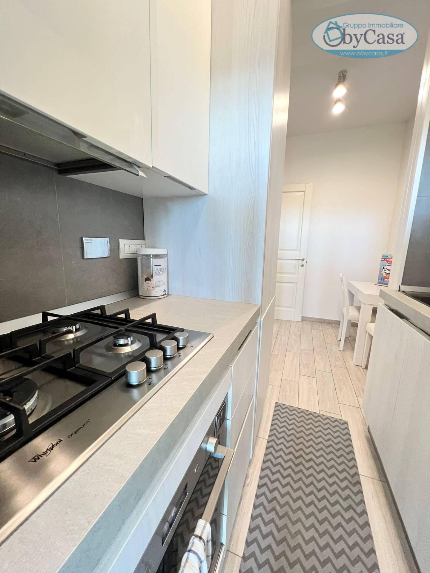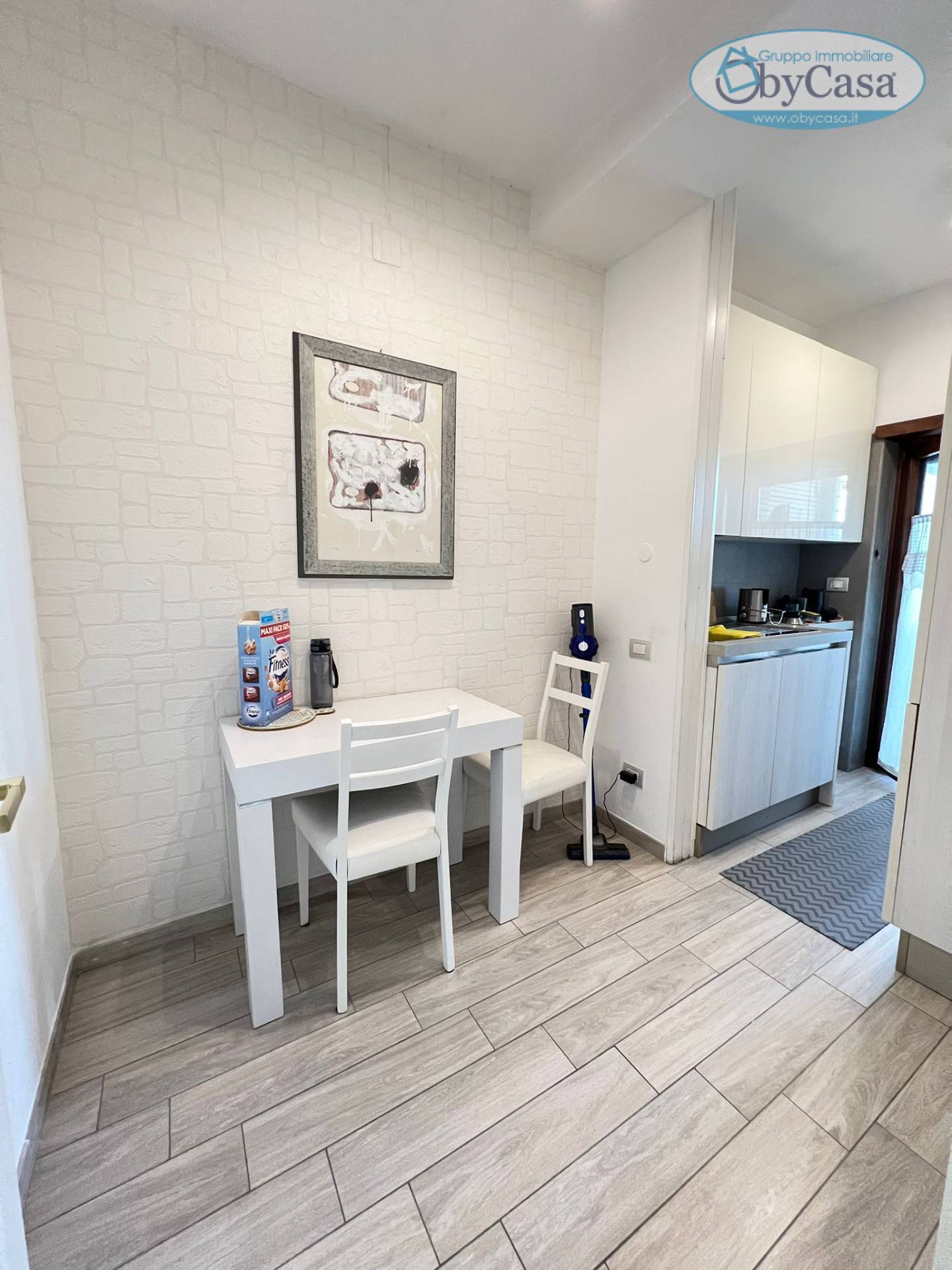 L'appartamento composto da un ingresso ed un locale open-space zona giorno/notte, bagno, cucinotto con balconcino di servizio e balcone con esposizione Est che offre una vista panoramica sul quartiere.
