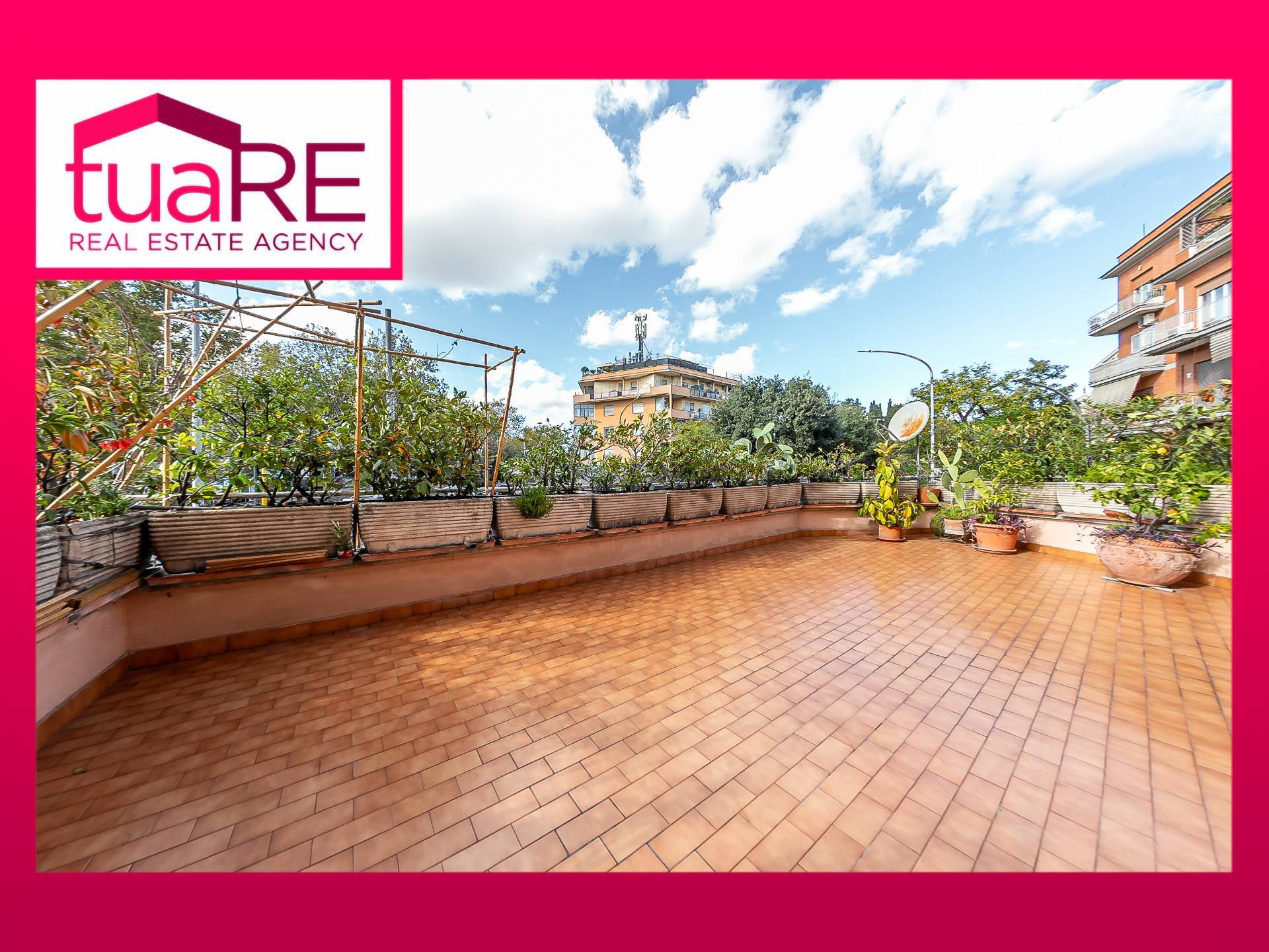 TUA RE Monteverde ad. (Via Leone XIII) SPLENDIDO appartamento con MERAVIGLIOSO TERRAZZO di circa 100 mq ed AFFACCI ALTI PANORAMICI e molto luminosi, ristrutturato, in STABILE SIGNORILE, ampio ingresso, salone, 2 ampie camere, cucina abitabile, servizio.